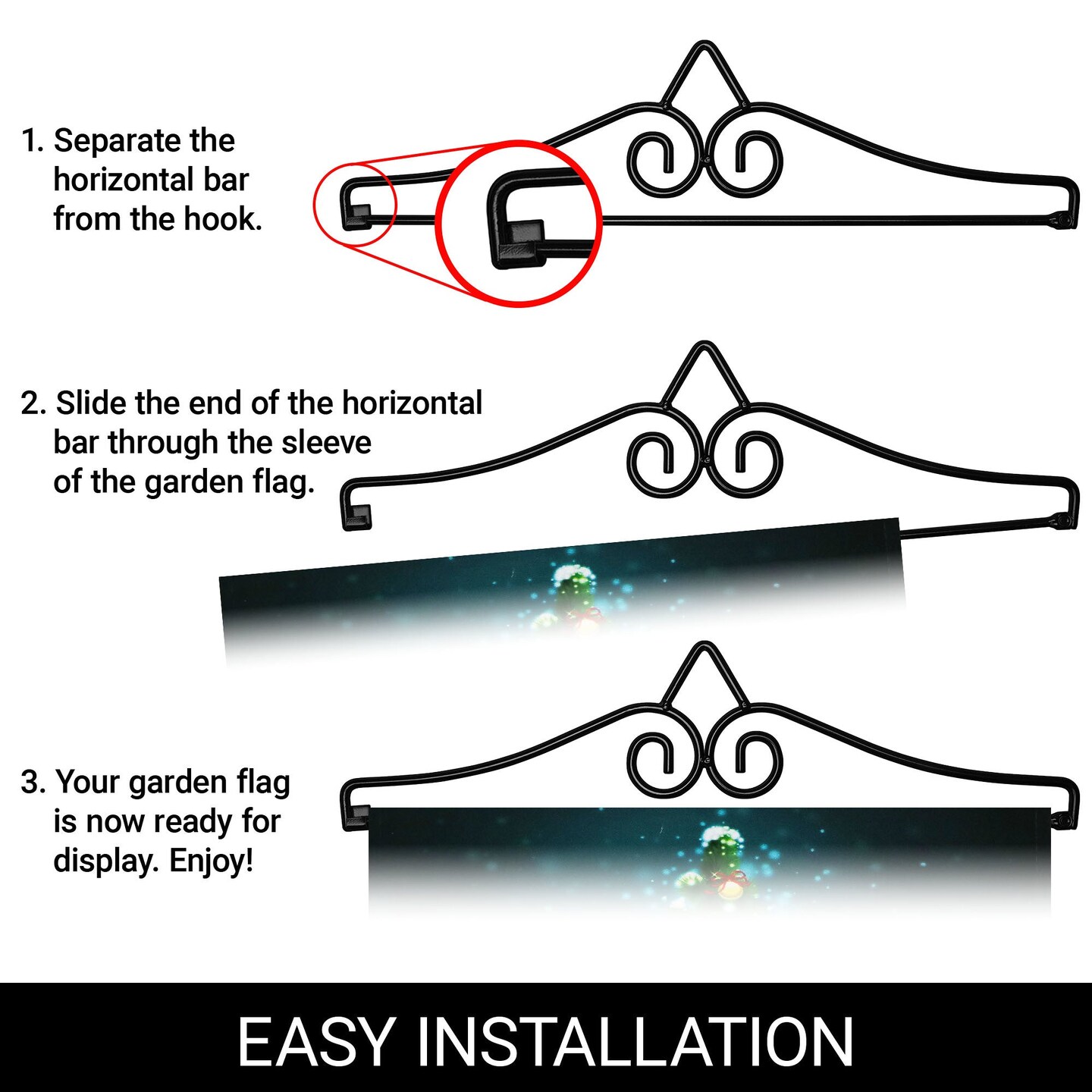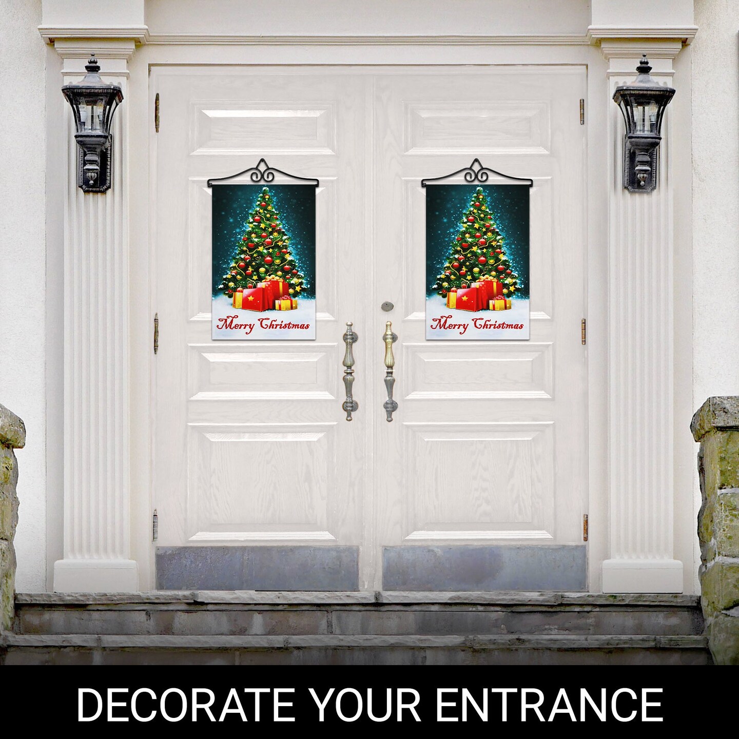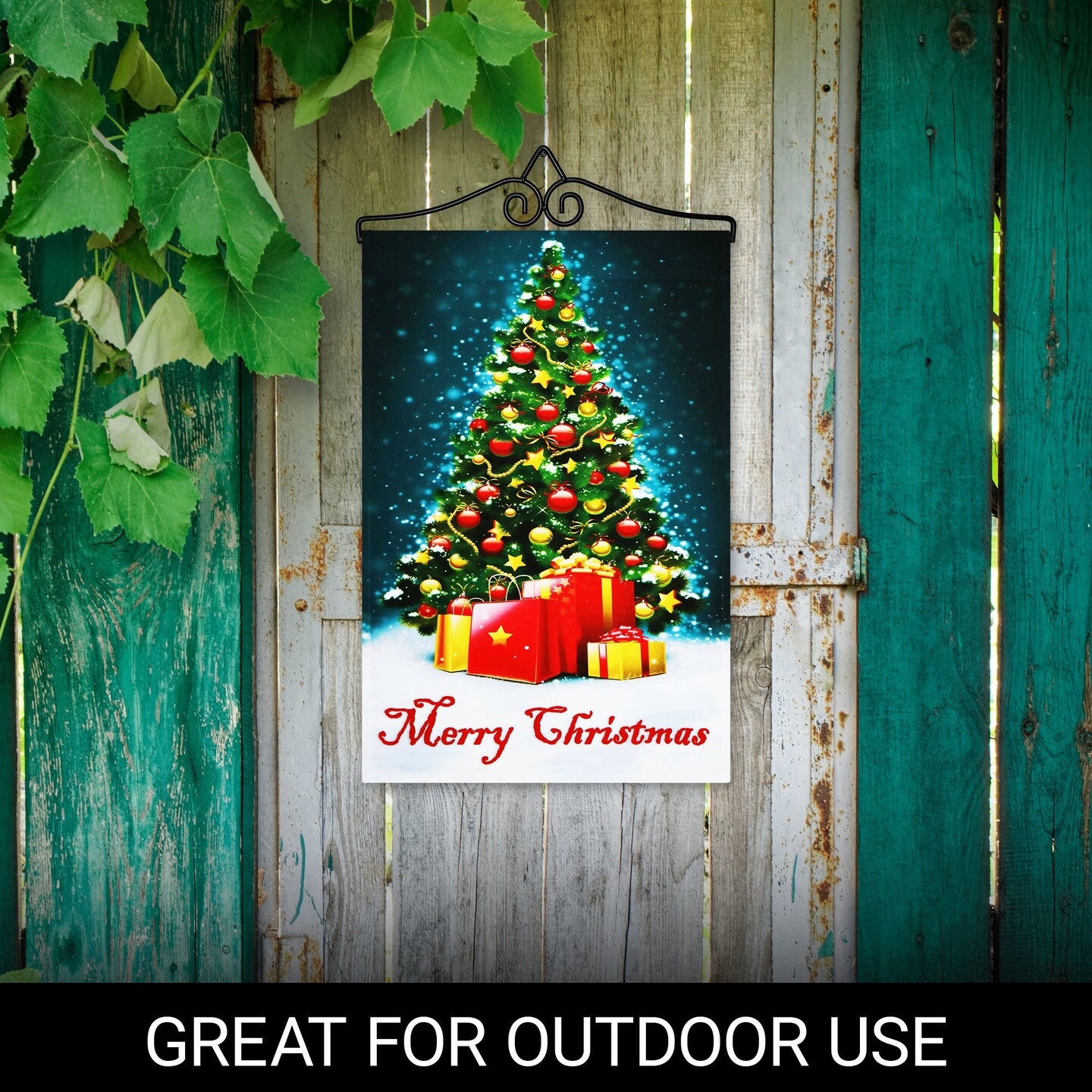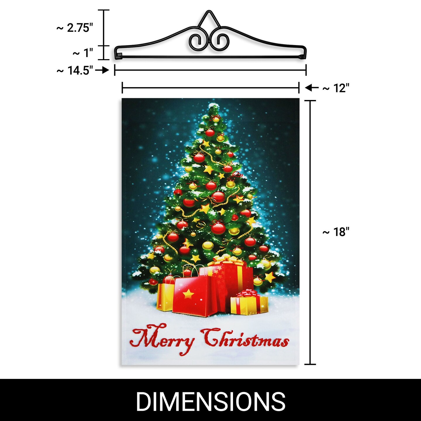 G128 Combo Pack Garden Flag Hanger 14IN & Garden Flag Merry Christmas Tree with Gifts 12x18IN Printed 150D Polyester
