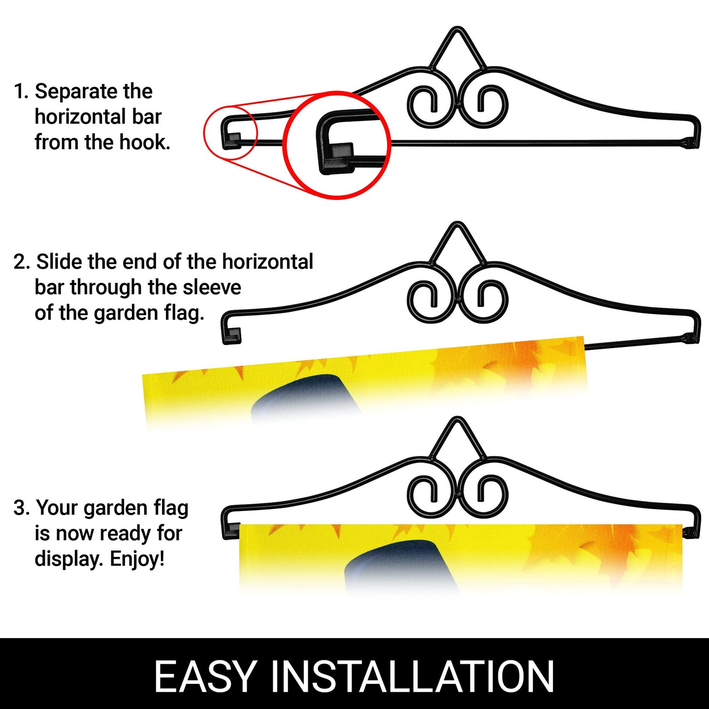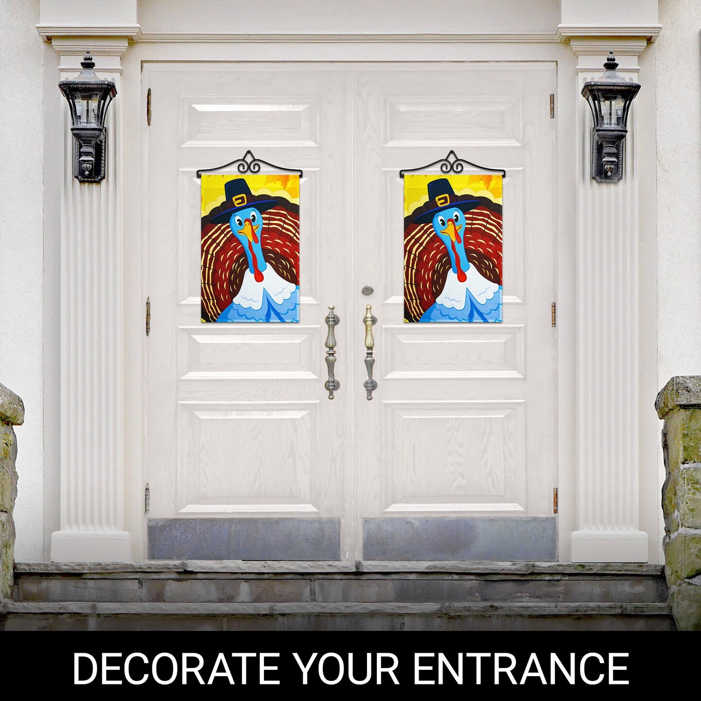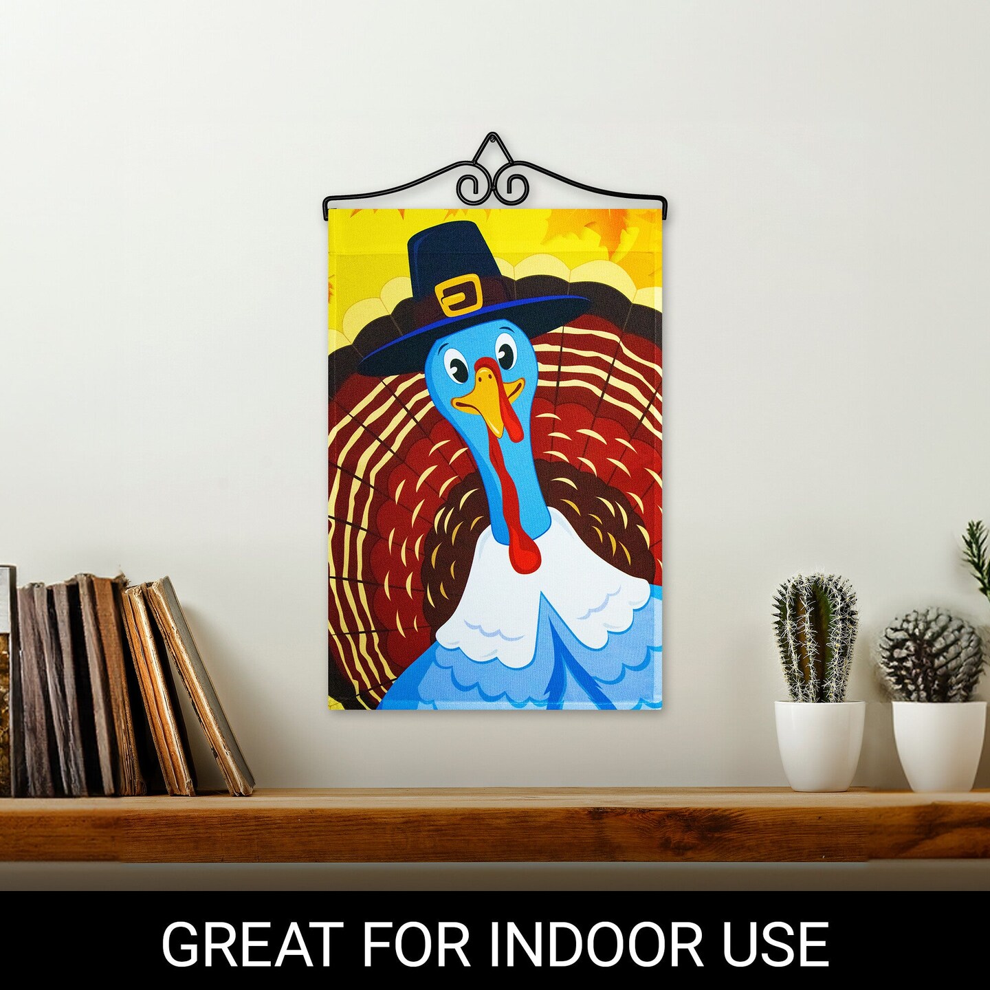 G128 Combo Pack Garden Flag Hanger 14IN & Garden Flag Pilgrim Turkey Yellow BG 12x18IN Printed 150D Polyester