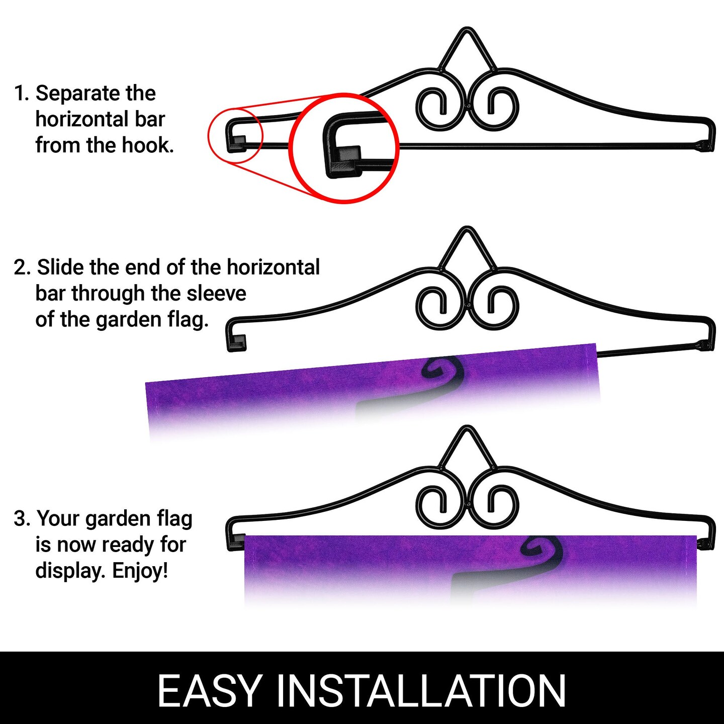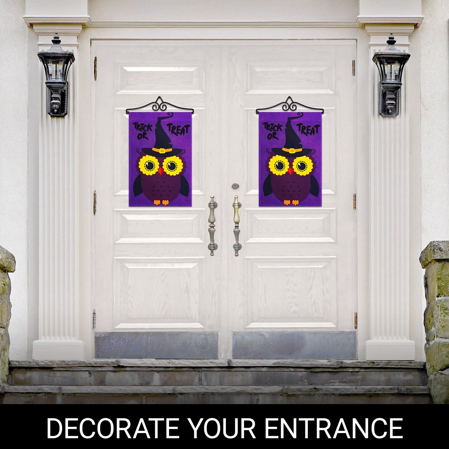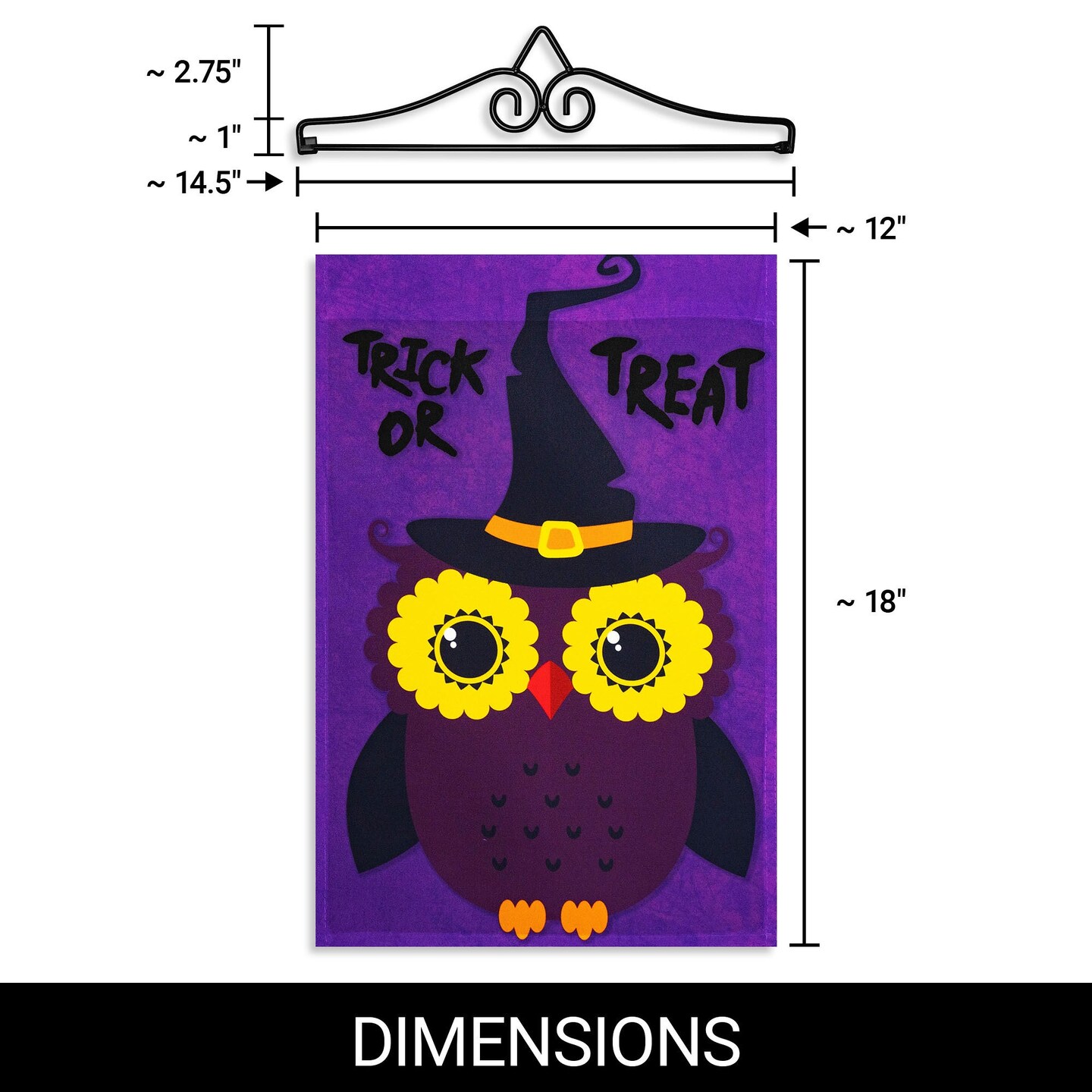 G128 Combo Pack Garden Flag Hanger 14IN & Garden Flag Trick or Treat Owl Purple BG 12x18IN Printed 150D Polyester