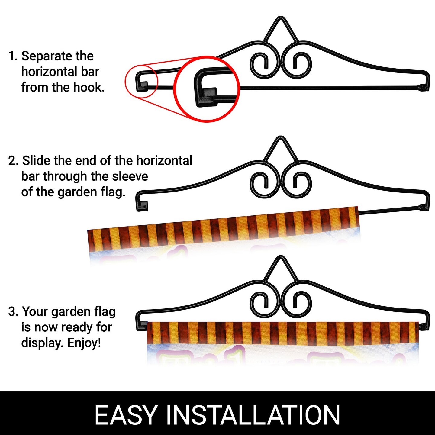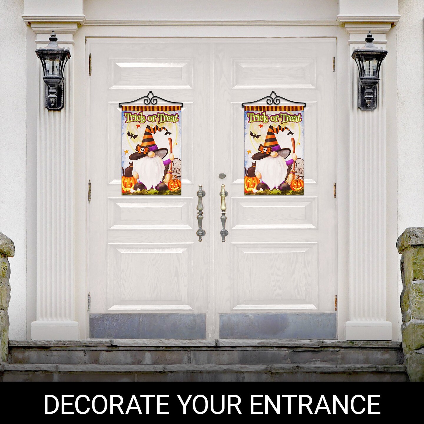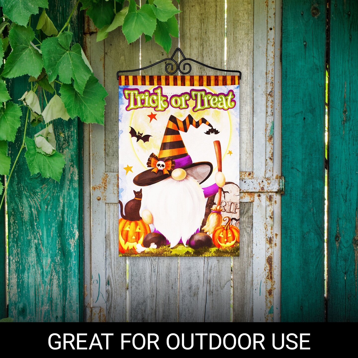 G128 Combo Pack Garden Flag Hanger 14IN & Garden Flag Trick or Treat Witch Hat Gnome with Broom 12x18IN Printed Double Sided Blockout Fabric