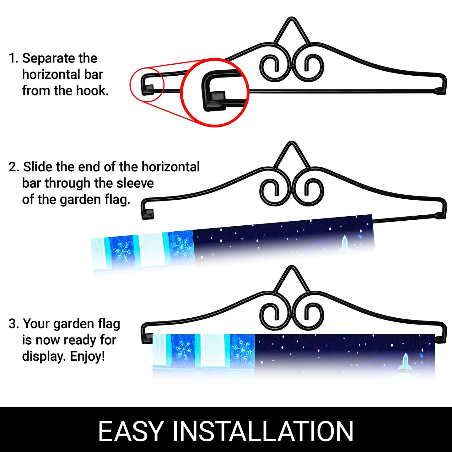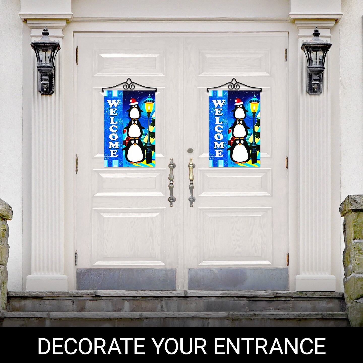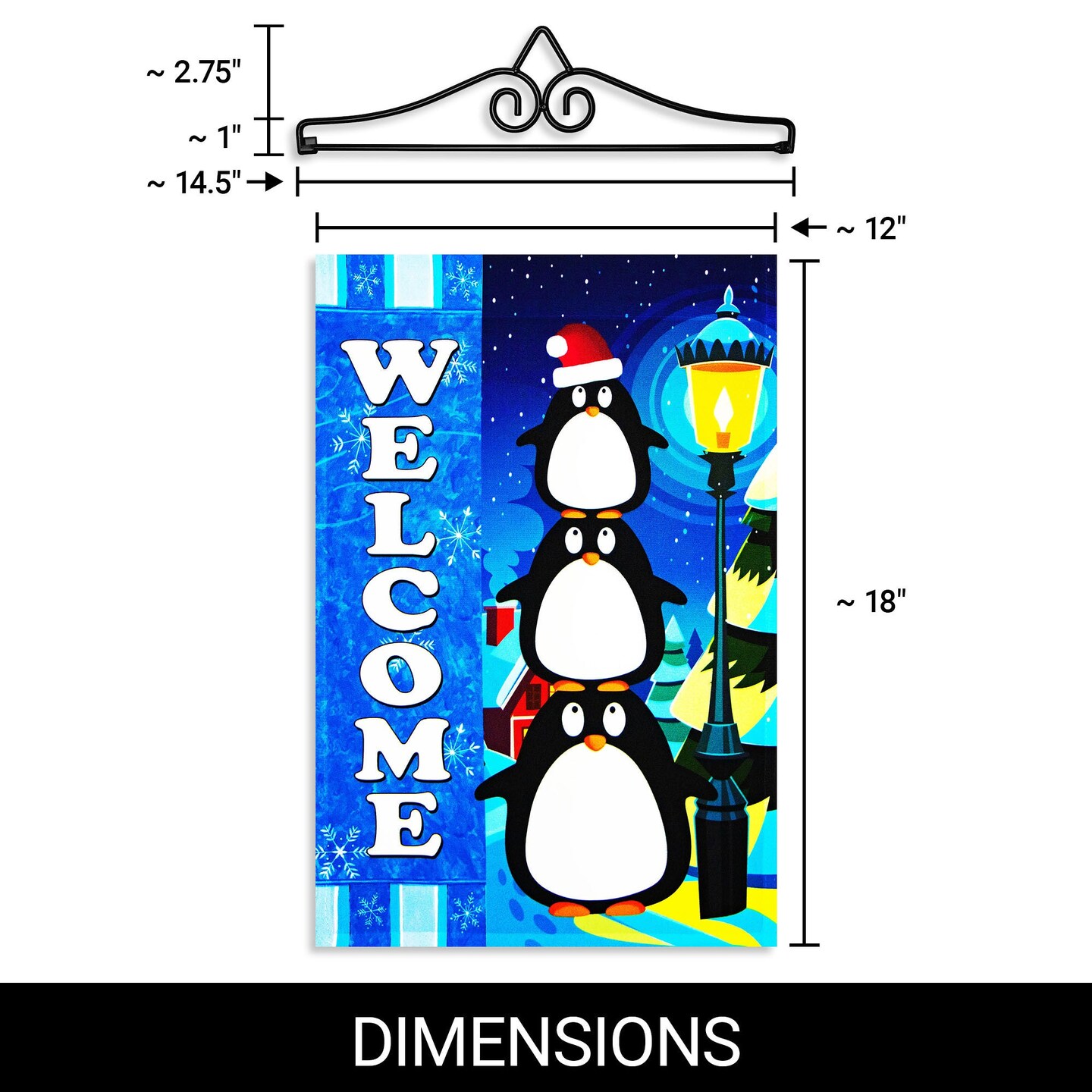 G128 Combo Pack Garden Flag Hanger 14IN & Garden Flag Welcome 3 Penguins 12x18IN Printed 150D Polyester