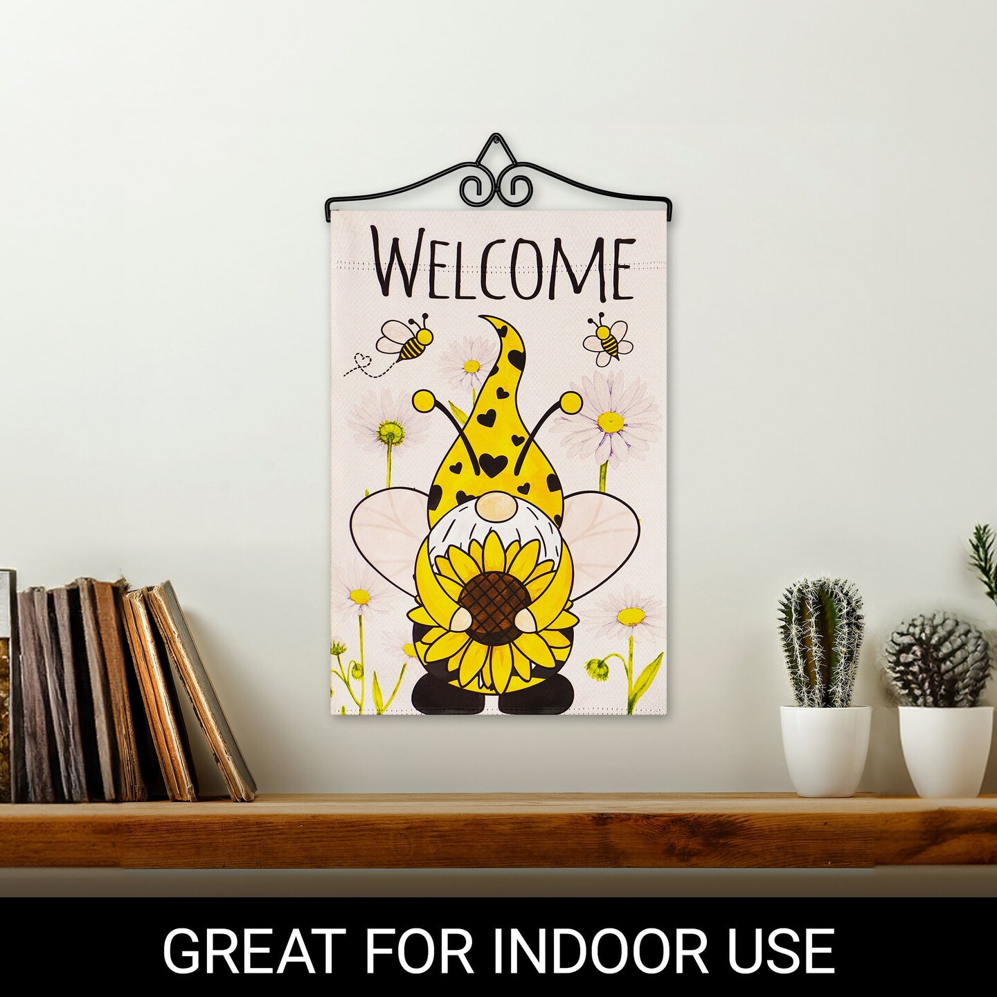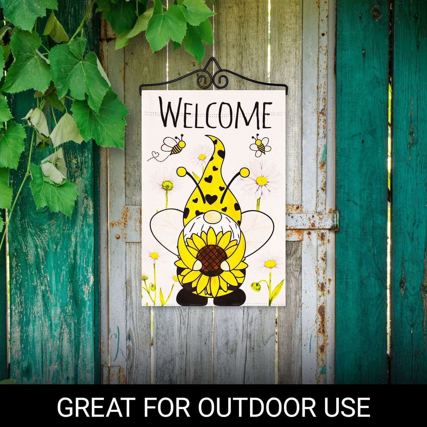 G128 Combo Pack Garden Flag Hanger 14IN & Garden Flag Welcome Bee Gnome with Sunflower 12x18IN Printed Double Sided Blockout Fabric
