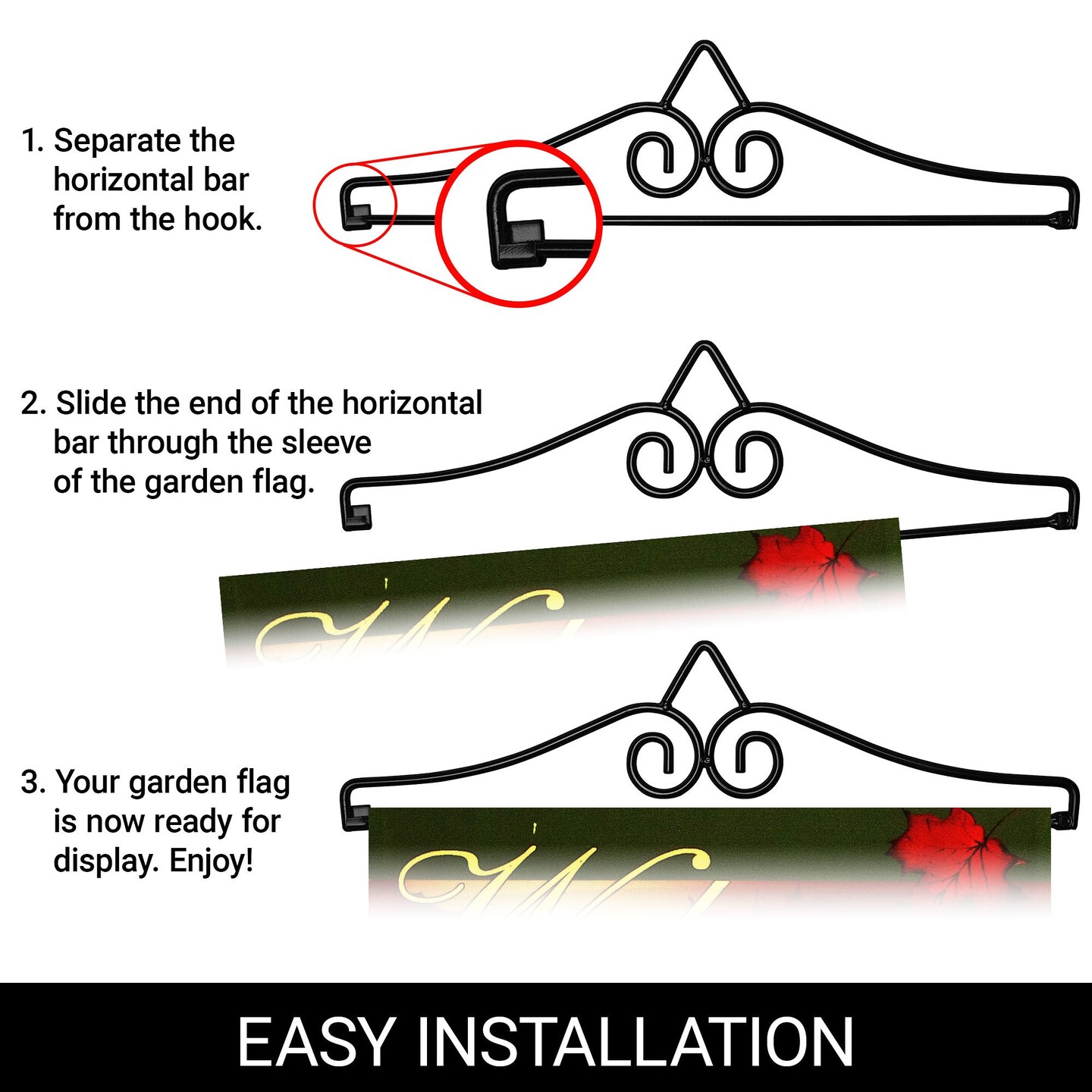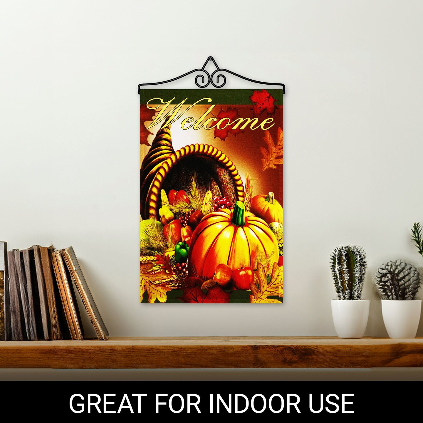 G128 Combo Pack Garden Flag Hanger 14IN & Garden Flag Welcome Cornucopia with Pumpkin 12x18IN Printed 150D Polyester