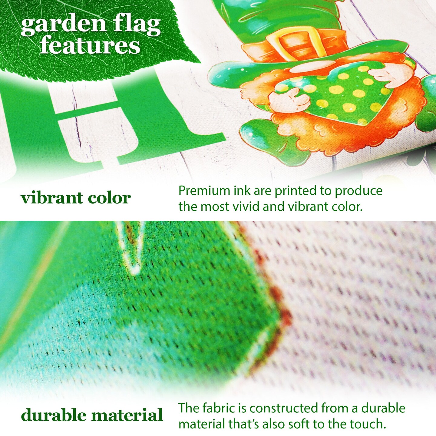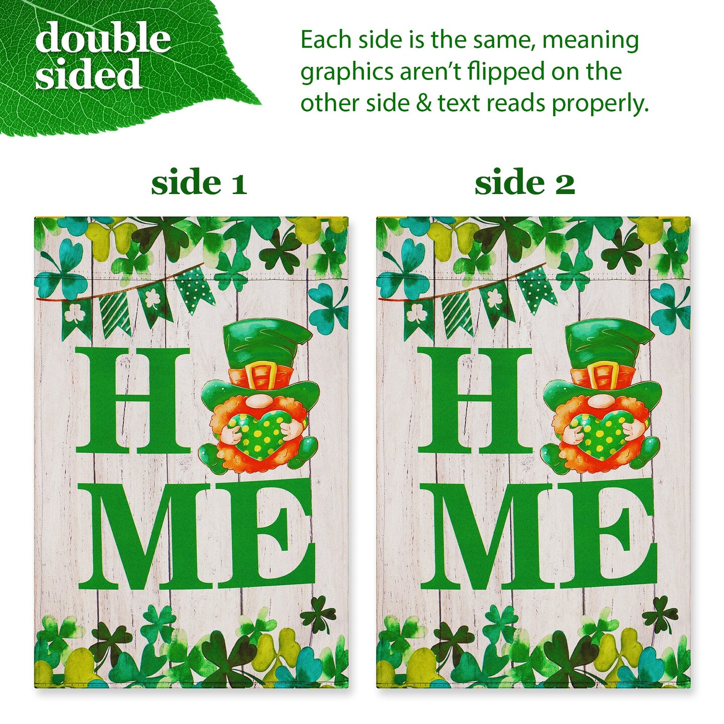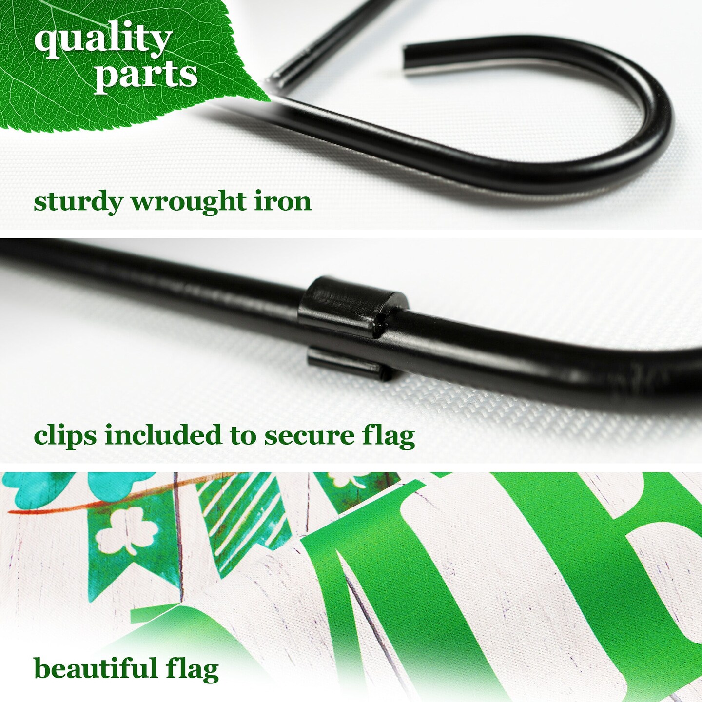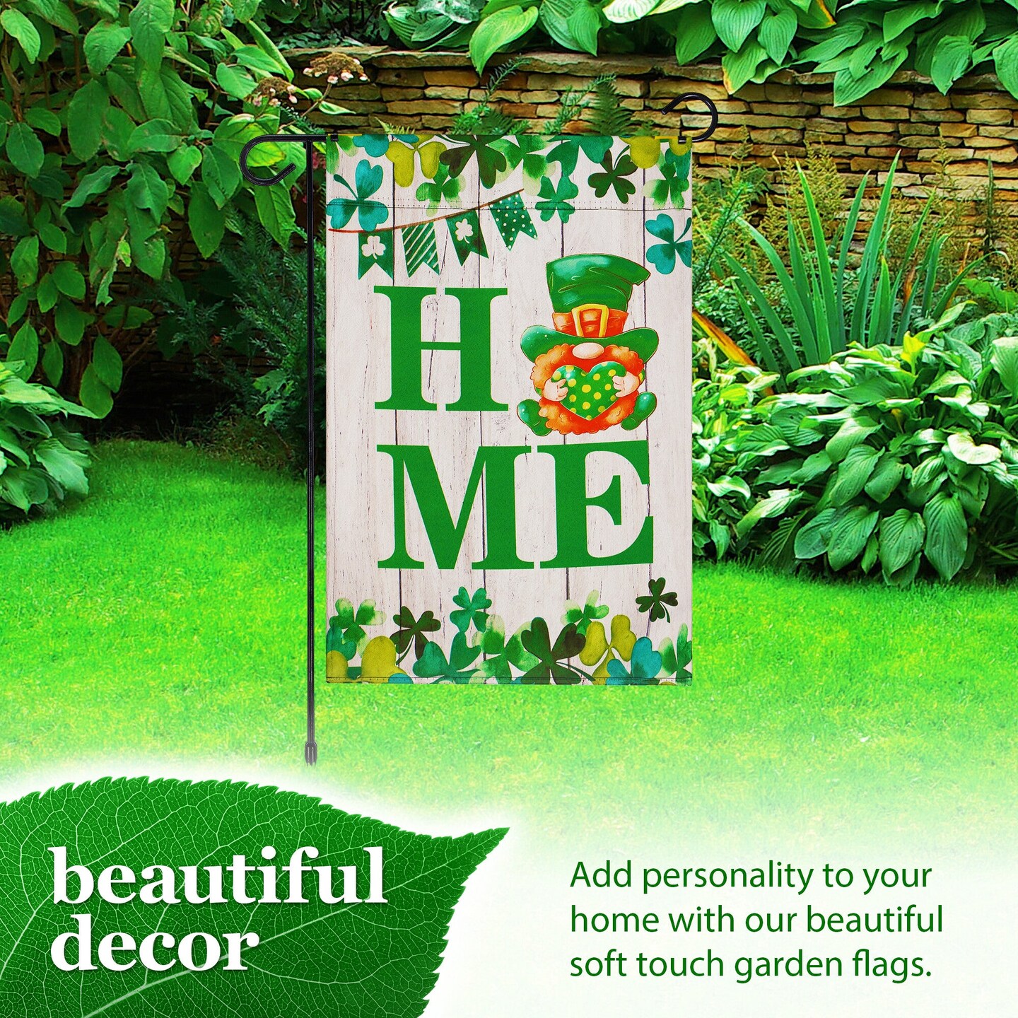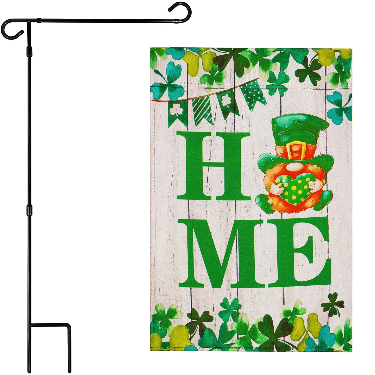 G128 Combo Pack: Garden Flag Stand Black 36 in x 16 in & Garden Flag Home St. Patrick's Day Decoration Gnome with Green Heart 12"x18" Double-Sided Blockout Fabric