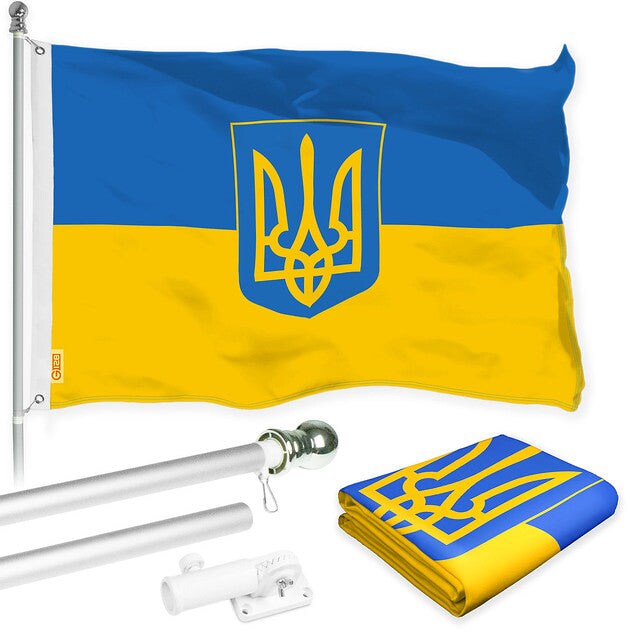 G128 Flag Pole 6FT Silver Tangle Free & Ukraine Ukrainian Coat of Arms Flag 3x5 Ft Combo Printed 150D Polyester