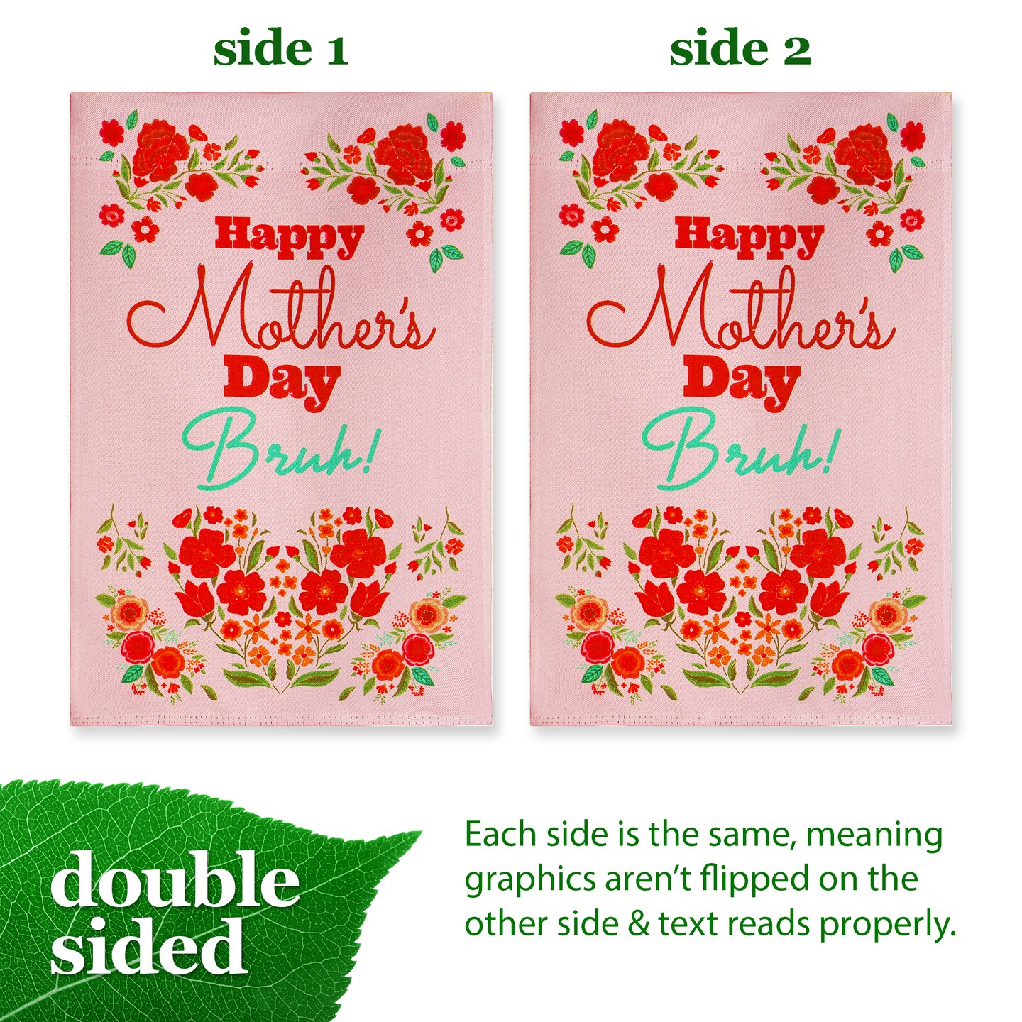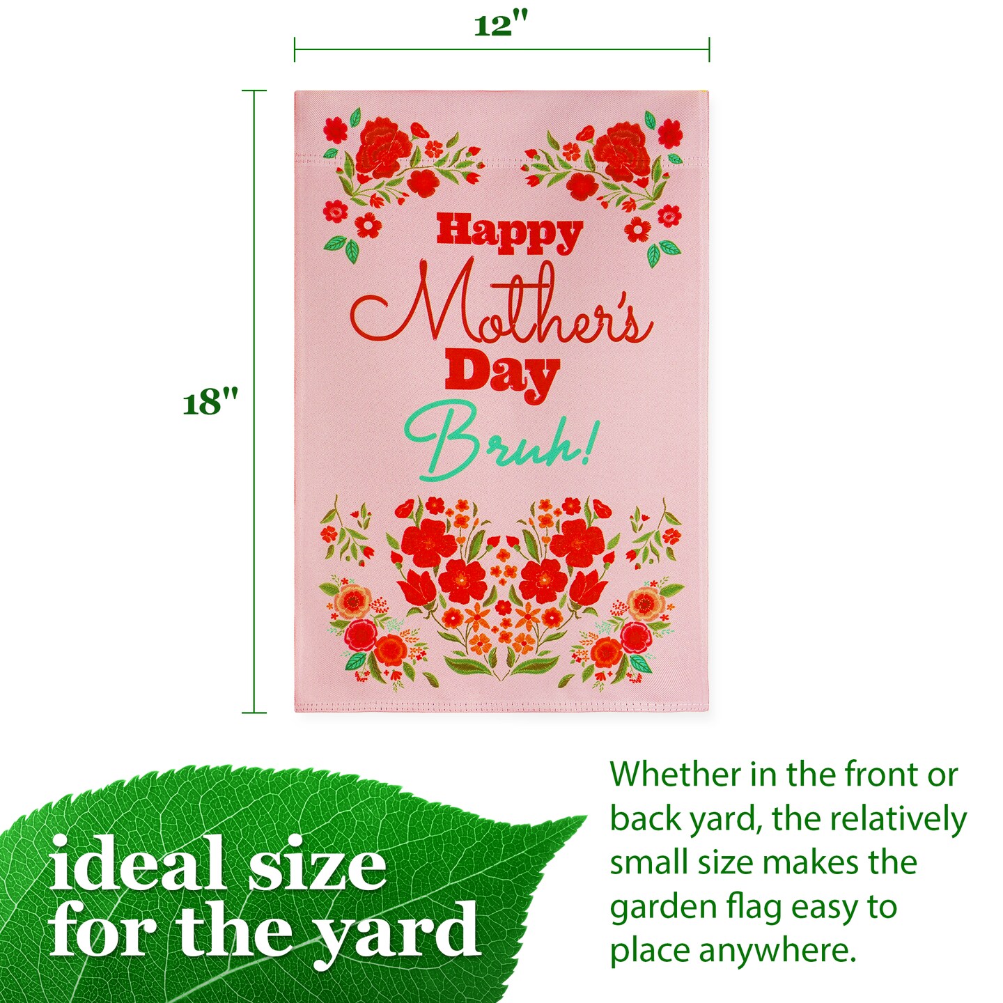 G128 Garden Flag Happy Mother's Day Bruh Double Sided 12"x18" Blockout Fabric | Outdoor Seasonal Holiday Home Yard Decor