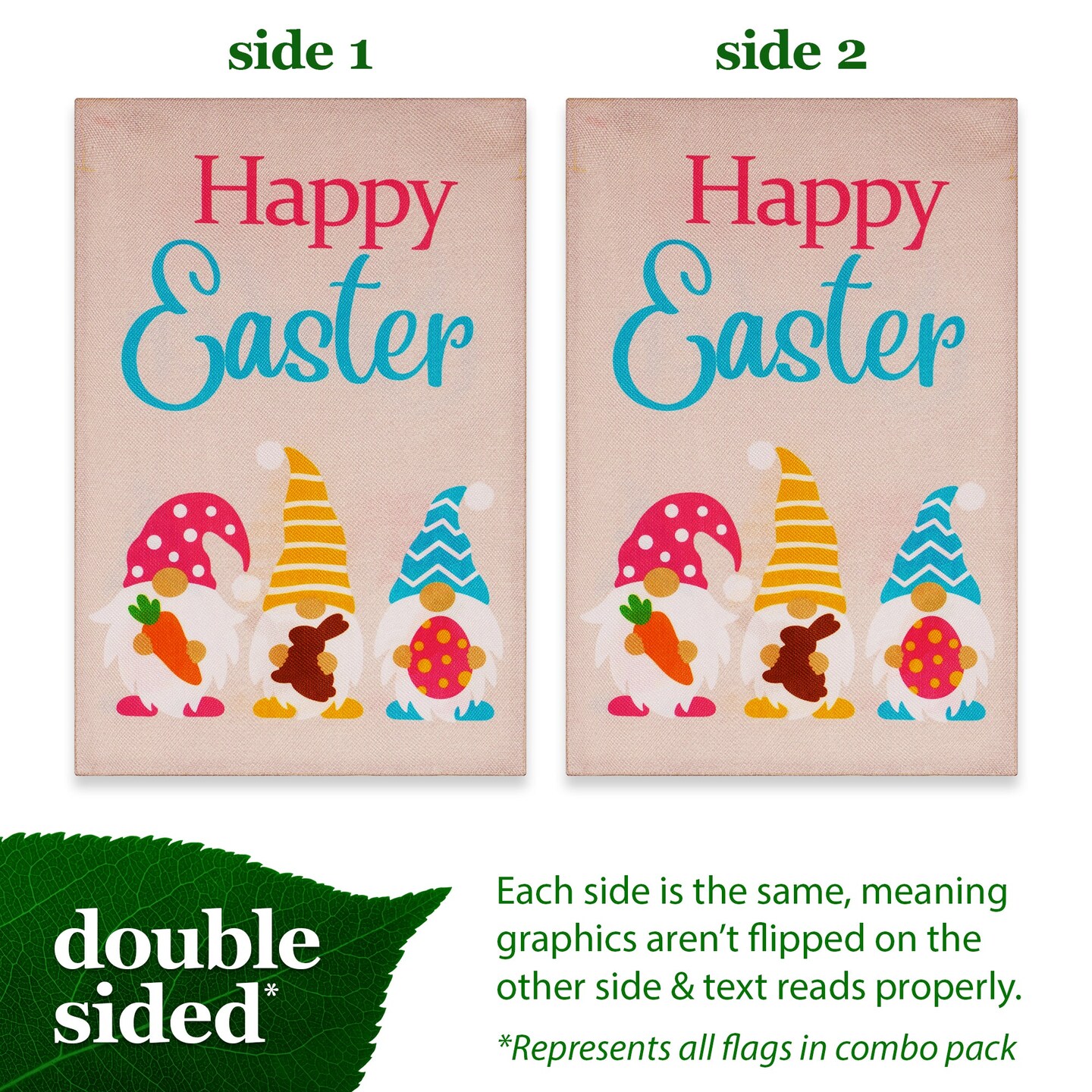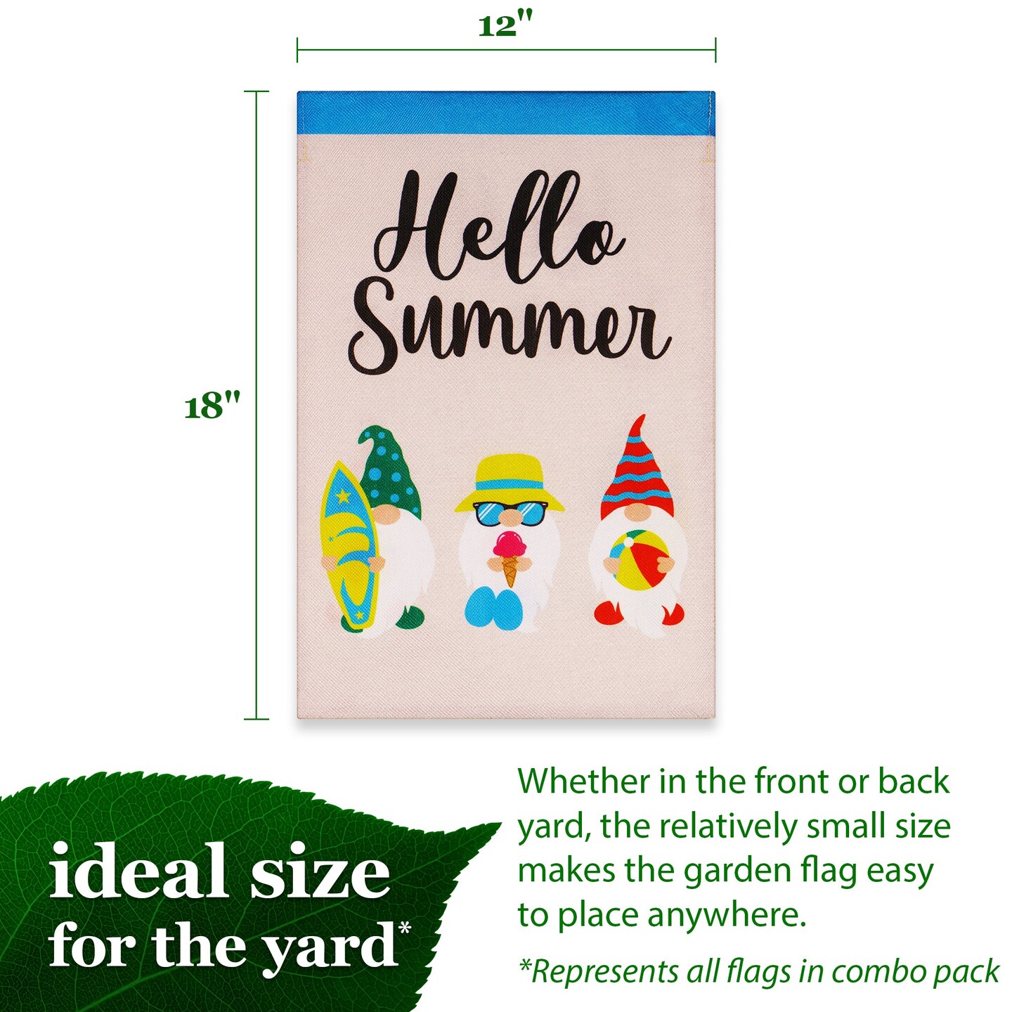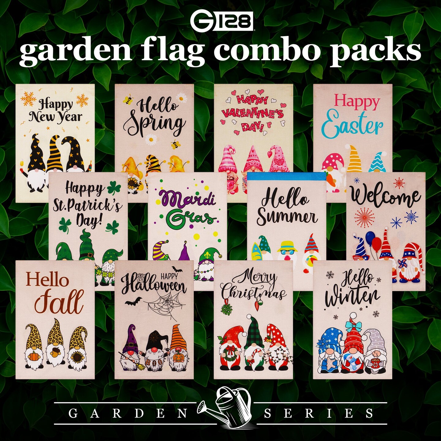 G128 Garden Flag Set Holiday Gnomes 12"x18" 12 pieces Burlap Fabric