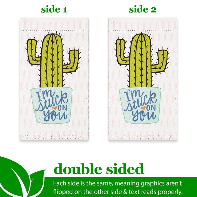 G128 Garden Flag & Stand I'm Stuck on You Cactus | 4x8 Inch | Printed Blockout Polyester