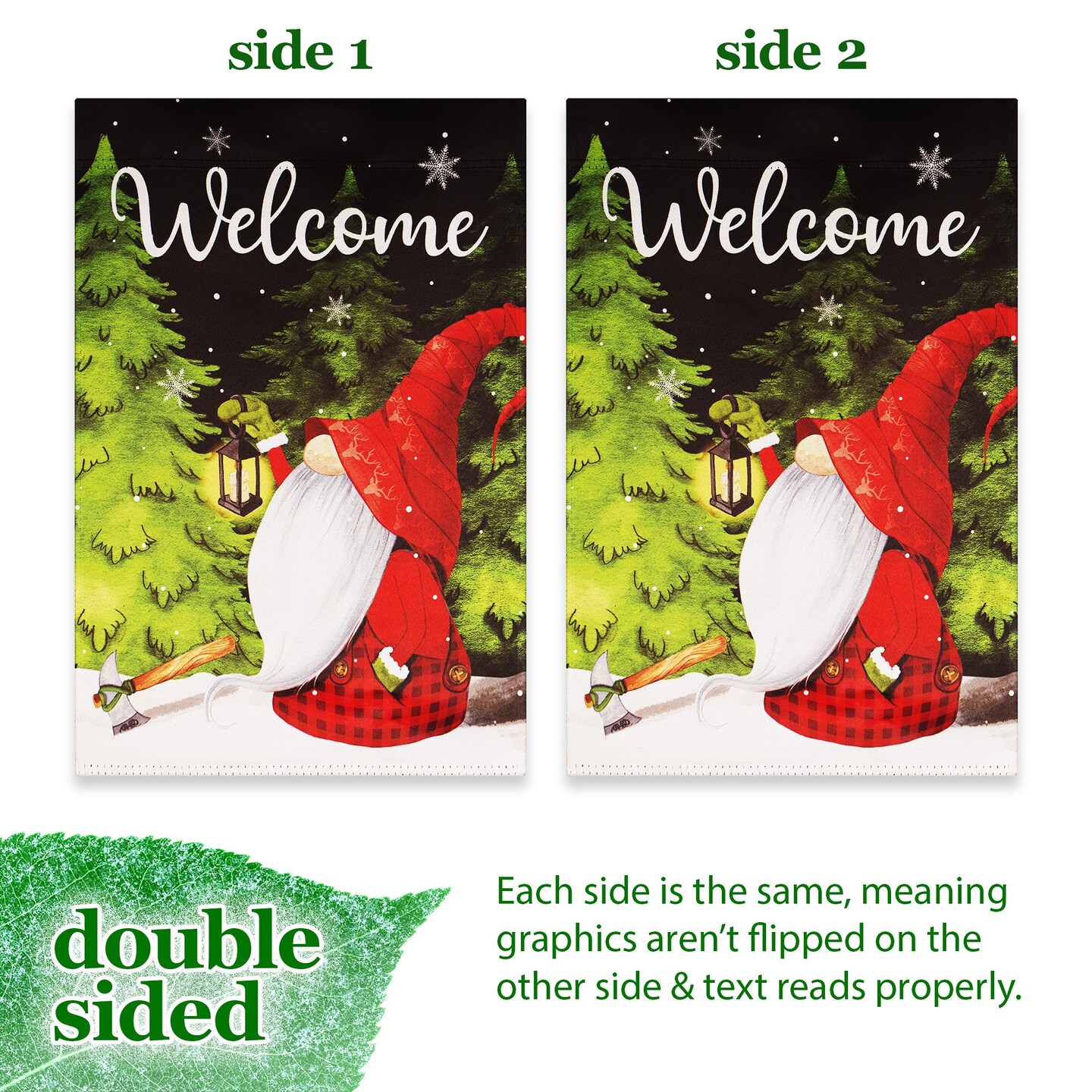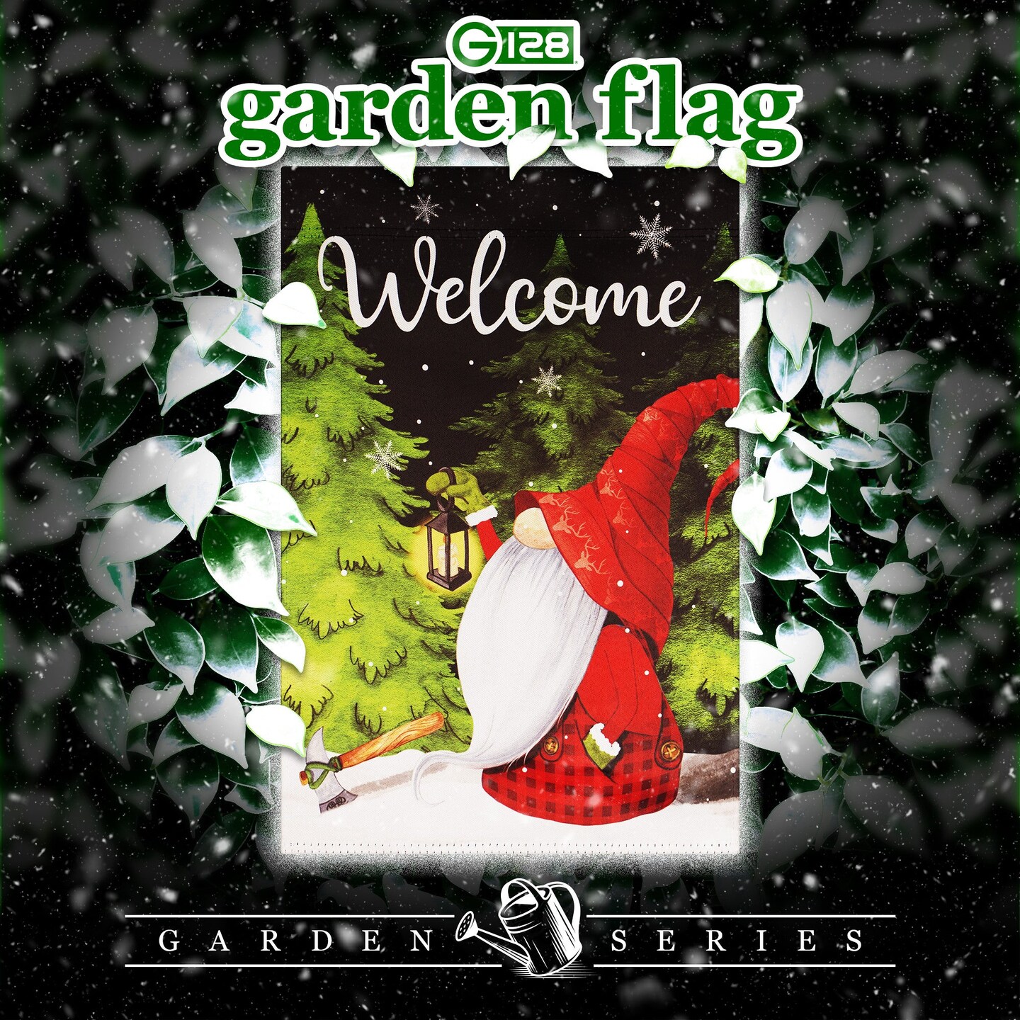 G128 Garden Flag Welcome Festive Gnome with Lantern | 12x18 Inch | Printed Blockout Polyester - Christmas Decoration
