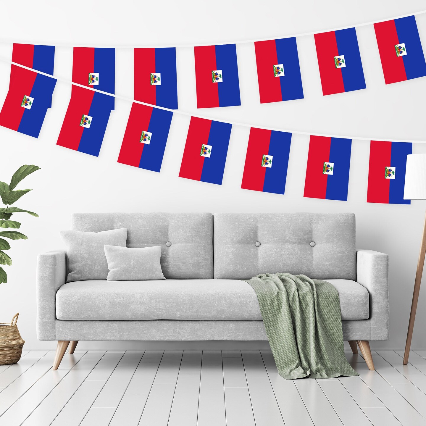 G128 Haiti Haitian Bunting Banner | Flag 8.2 x 5.5 Inch, Full String 33 Feet | Printed 150D Polyester, Decorations For Bar, School, Festival Events Celebration