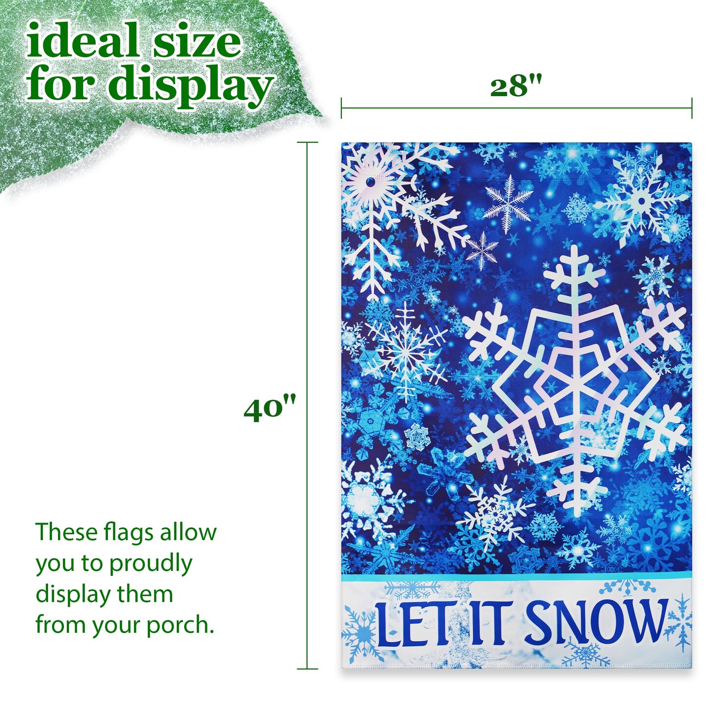 G128 House Flag Let It Snow Snowflakes | 28x40 Inch | Printed Blockout Polyester - Winter Decoration