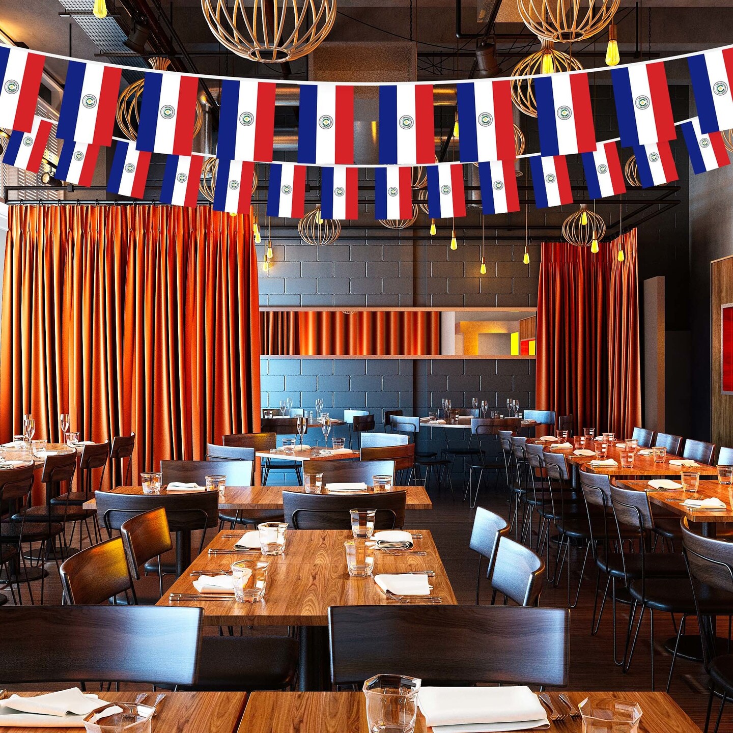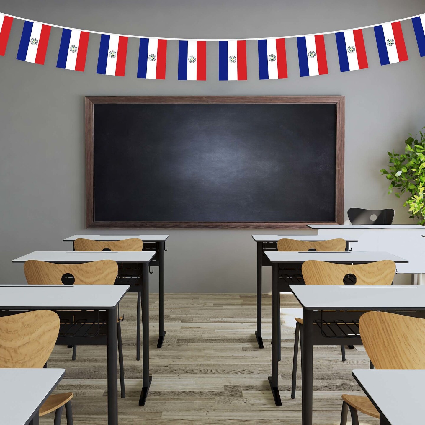 G128 Paraguay Paraguayan Bunting Banner | Flag 8.2 x 5.5 Inch, Full String 33 Feet | Printed 150D Polyester, Decorations For Bar, School, Festival Events Celebration
