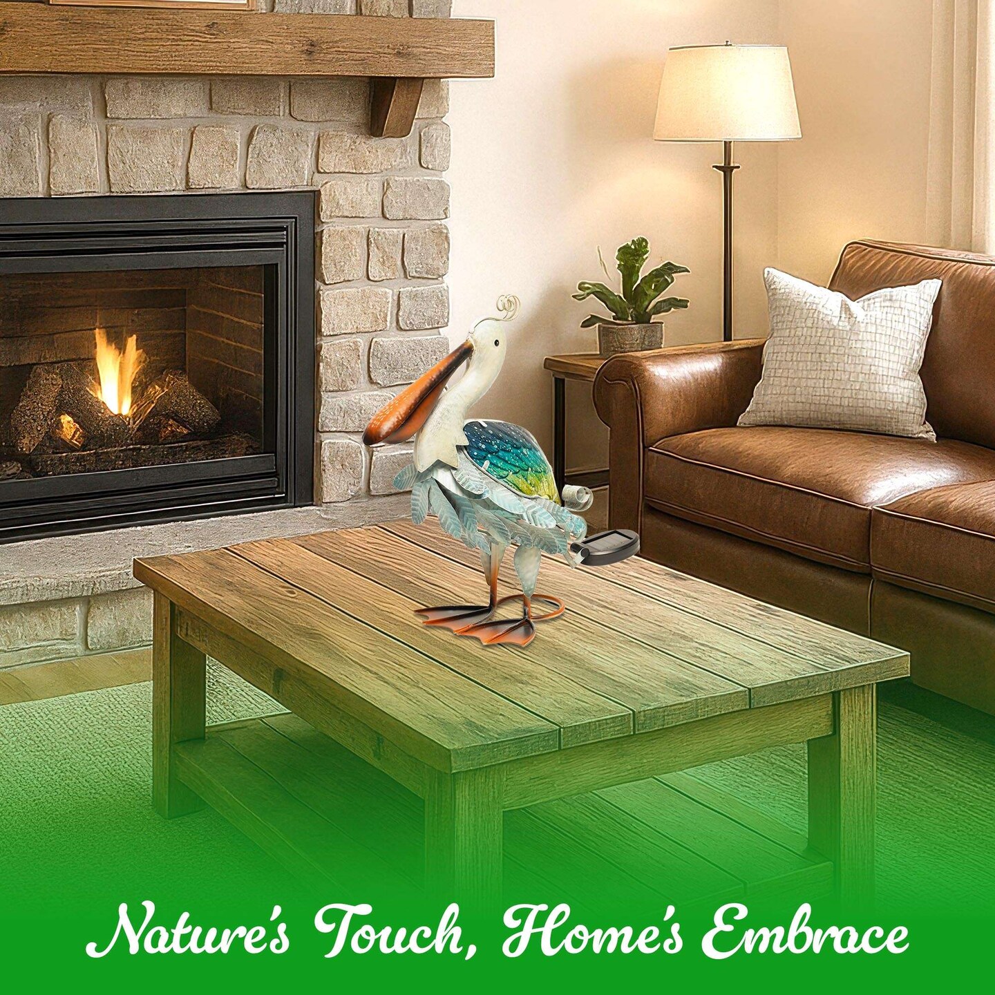 G128 Solar Metal Pelican Garden Statue | 17 Inch Coastal Ocean Bird Yard Art with Colorful Wings and Solar-Powered Light for Lawn, Patio, and Backyard