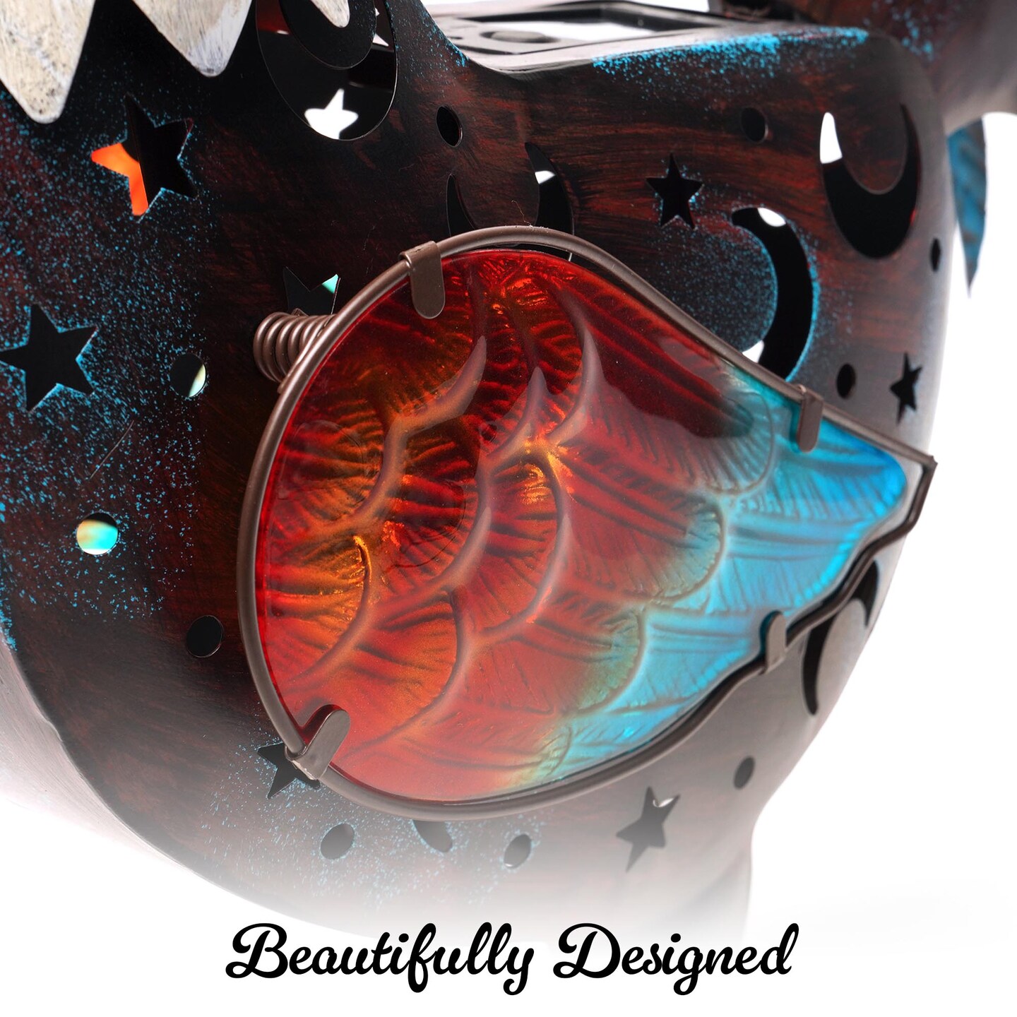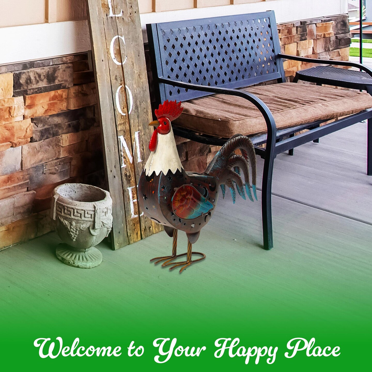 G128 Solar Metal Rooster Garden Statue | 18 in Farmhouse Rooster Outdoor Decor with LED Lights, Colorful Yard Art for Lawn Patio Backyard