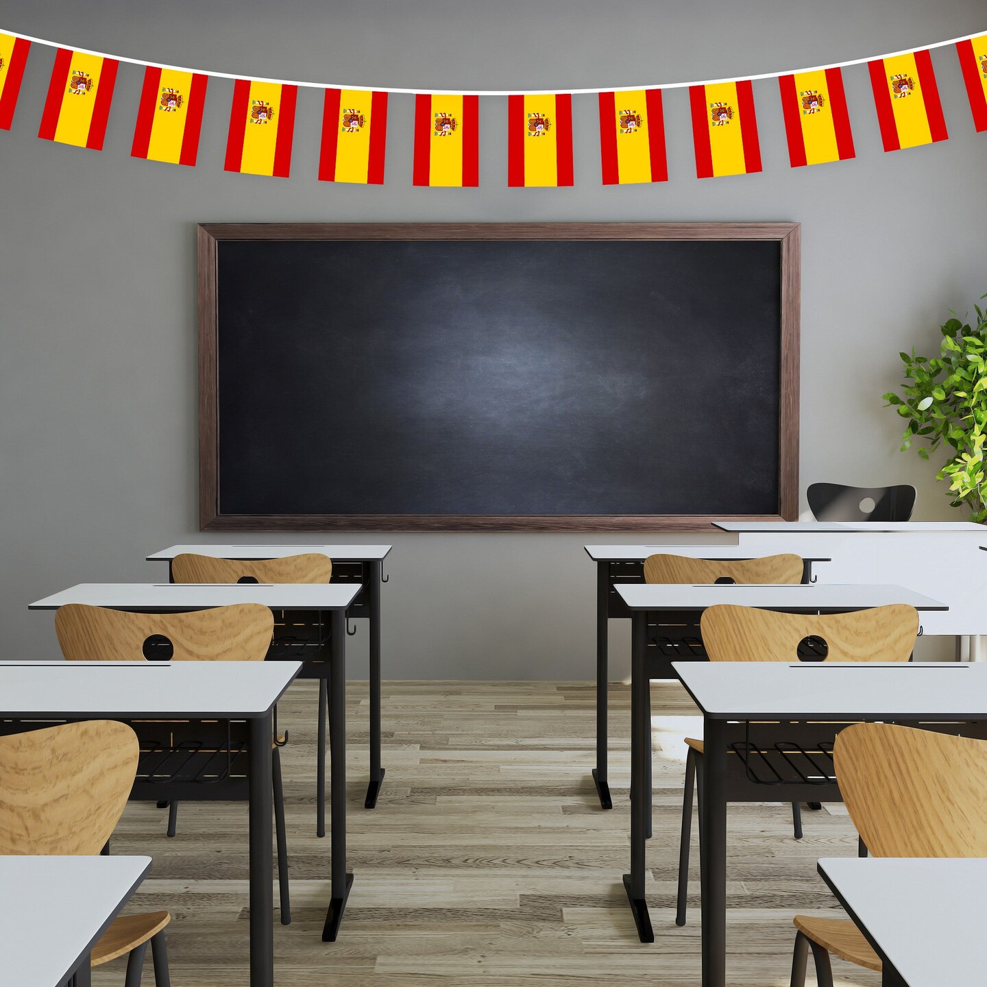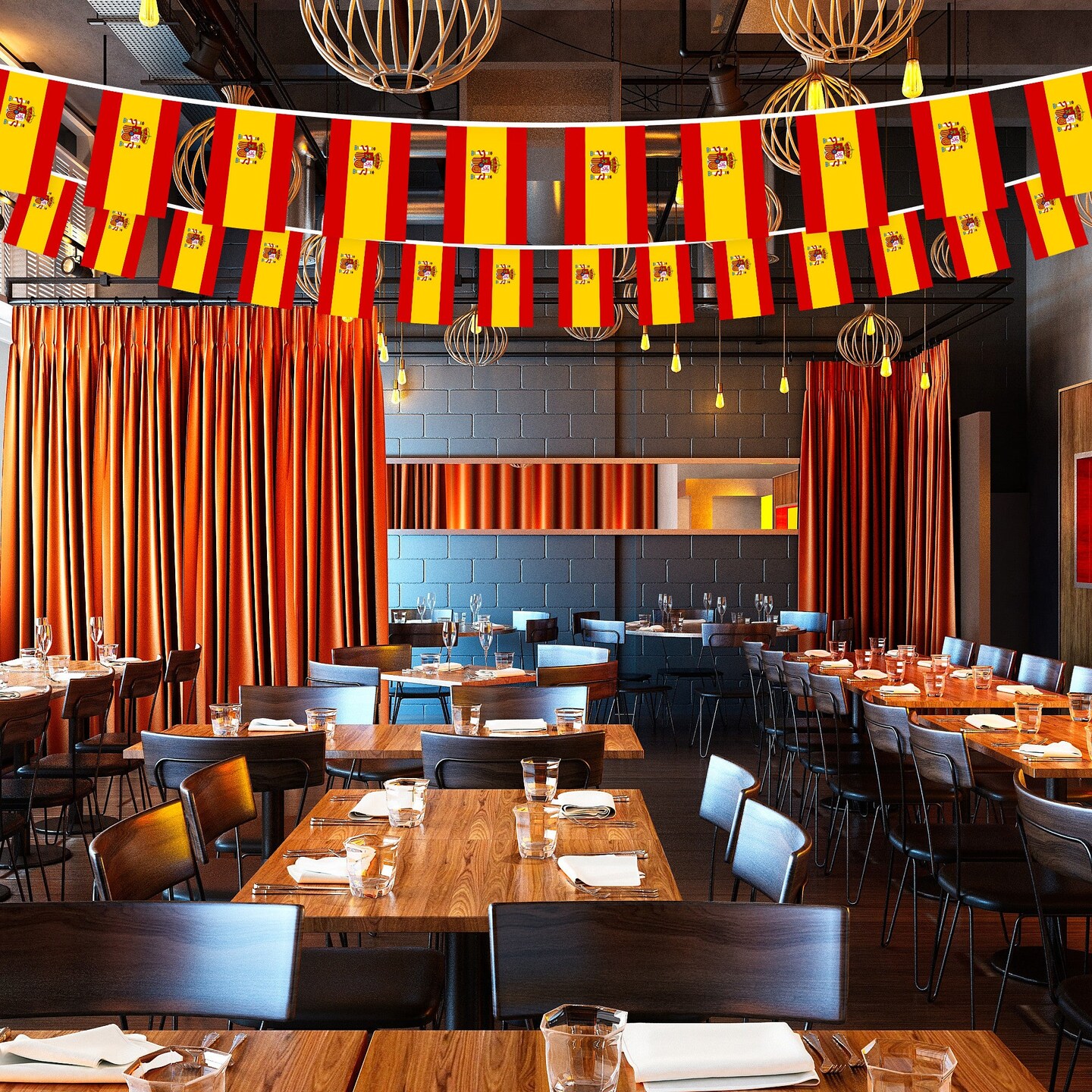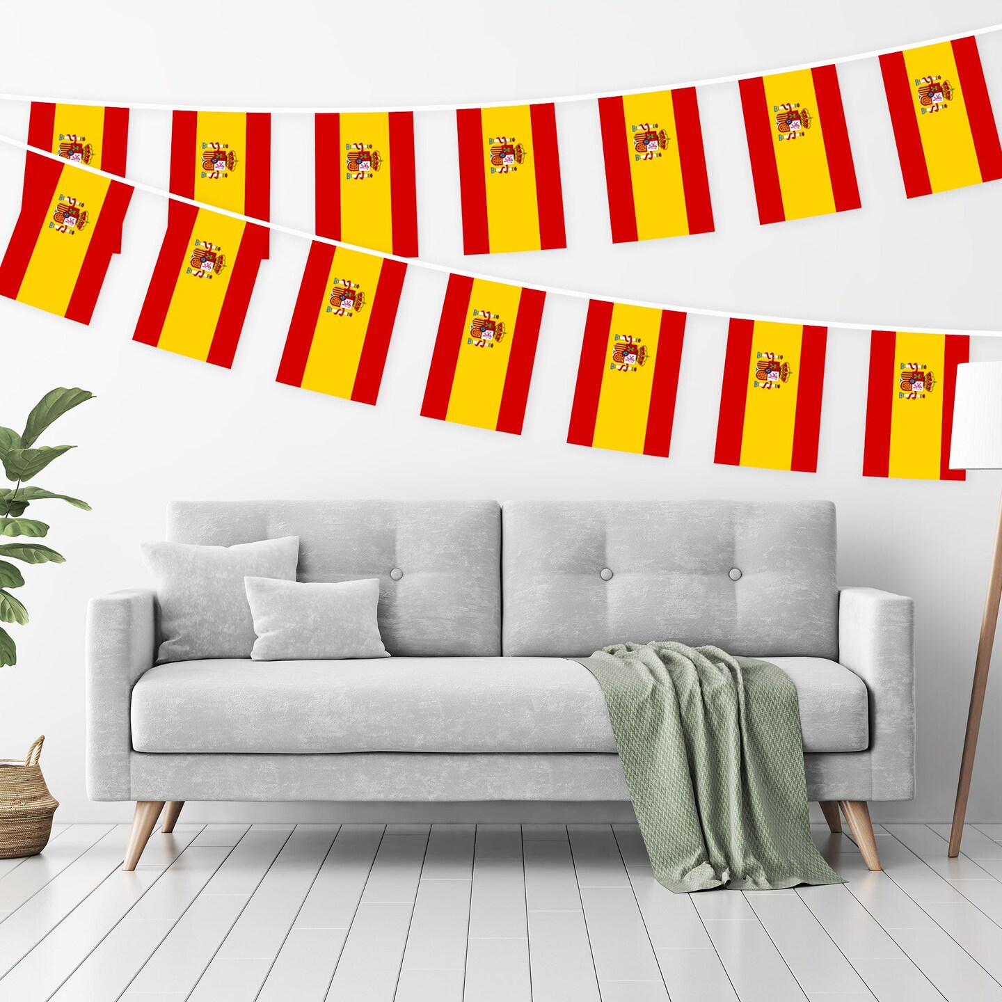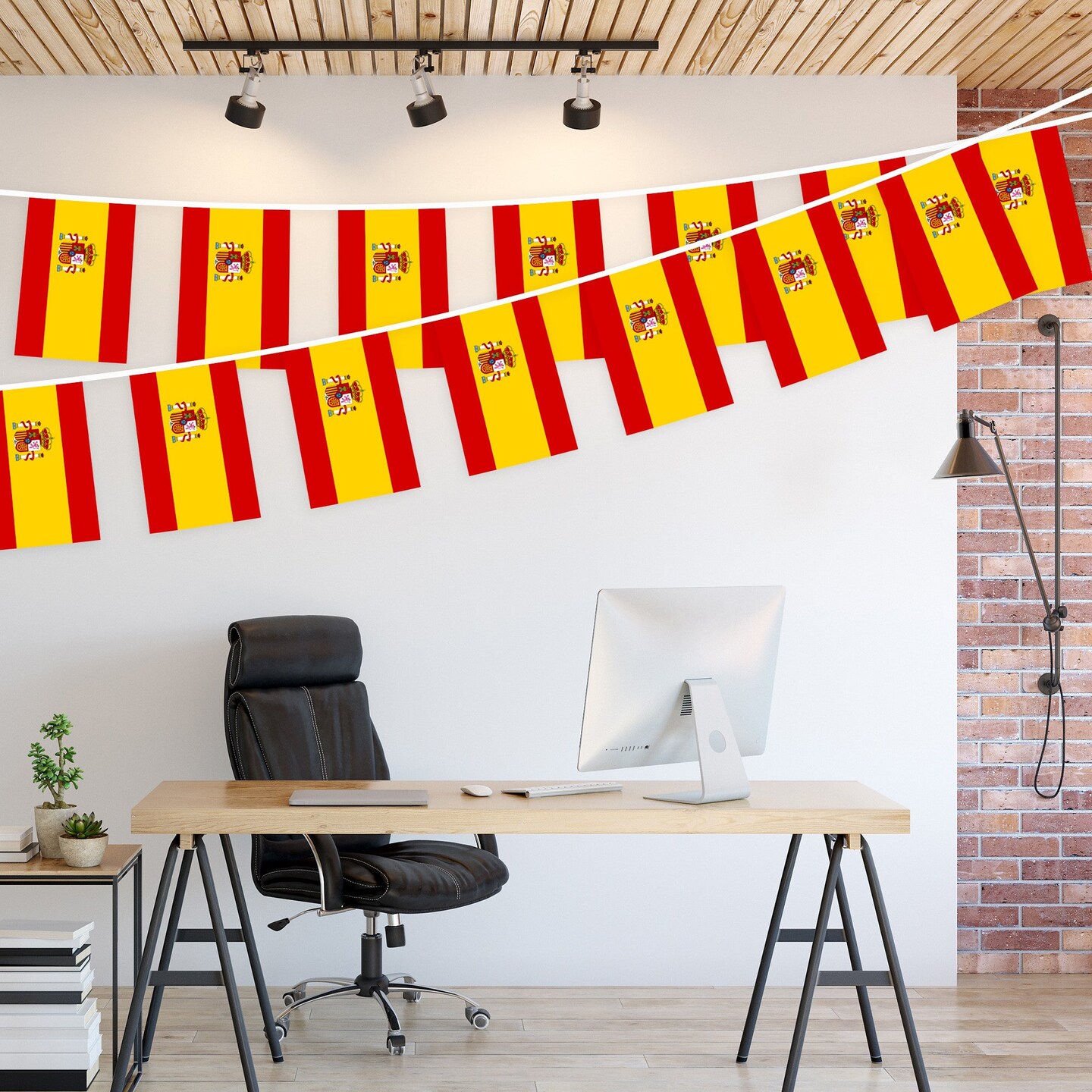 G128 Spain Spanish Bunting Banner | Flag 8.2 x 5.5 Inch, Full String 33 Feet | Printed 150D Polyester, Decorations For Bar, School, Festival Events Celebration