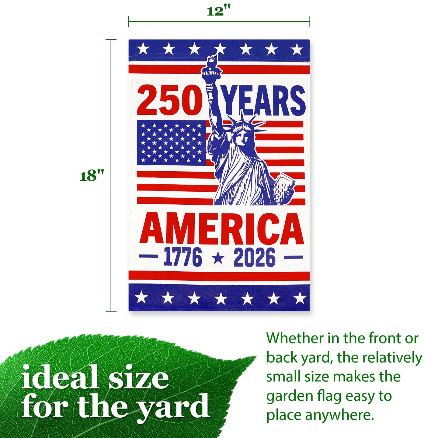 G128 USA 250th Anniversary Garden Flag 12x18 In Double Sided Printed Patriotic Yard Decoration | 1776-2026 Statue of Liberty Flag