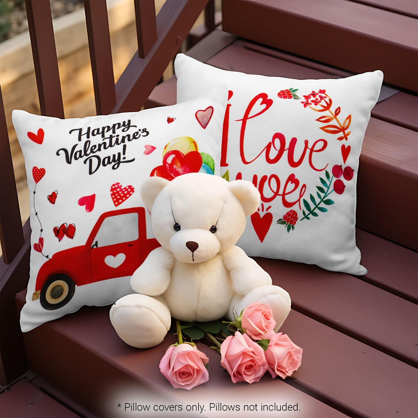 G128 Valentine's Day Decoration Love Heart Waterproof Throw Pillow Covers | 18 x 18 In | Set of 4, Beautiful Cushion Covers for Valentine's Day Sofa Couch Decoration