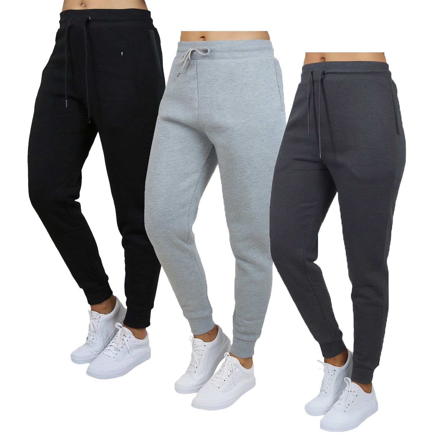 Galaxy by Harvic 3-Pack Women's Loose Fit Fleece Jogger Sweatpants With Sizde Zipper Pockets