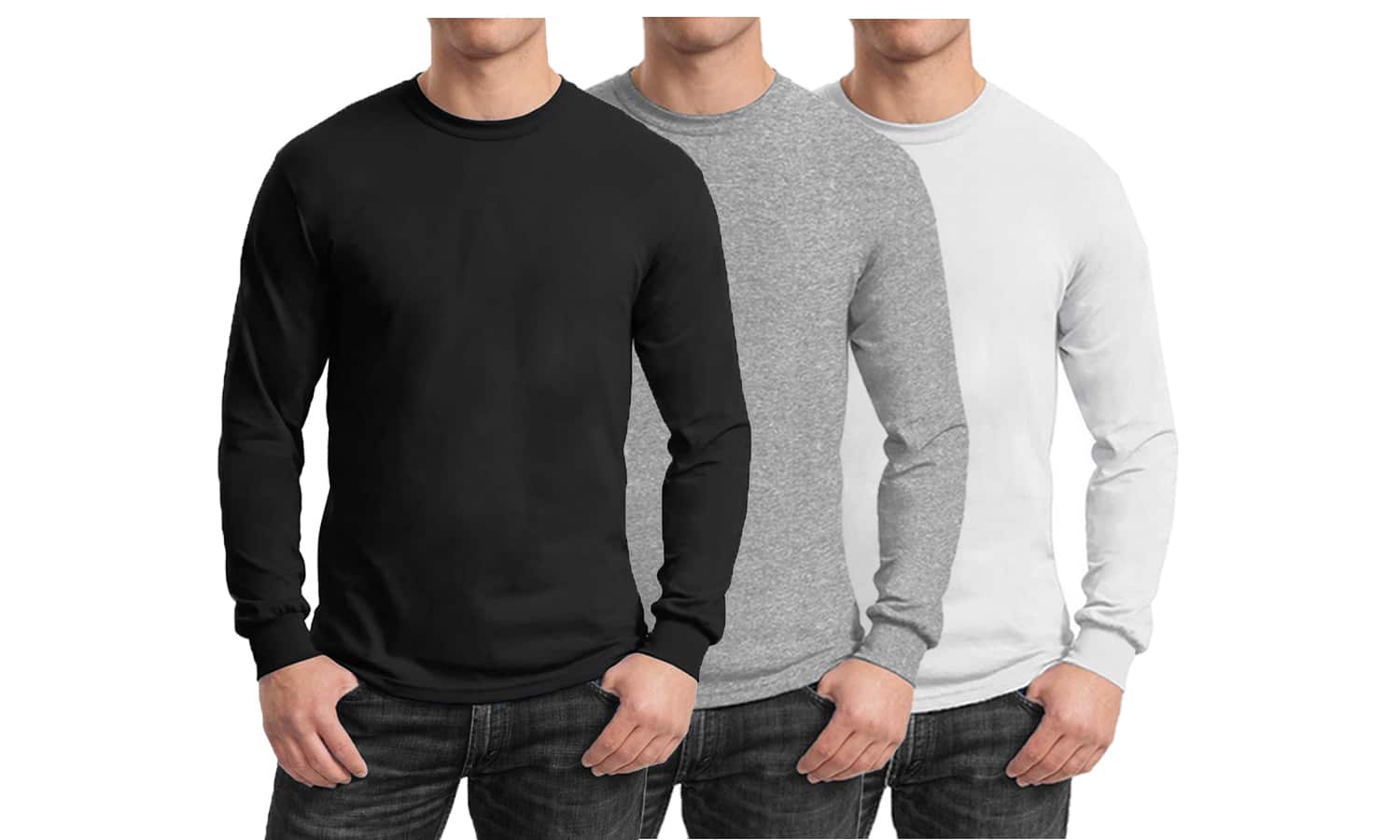 Galaxy By Harvic Long Sleeve Crew Neck Men's Egyptian Cotton-Blend T-Shirt 3 Pack