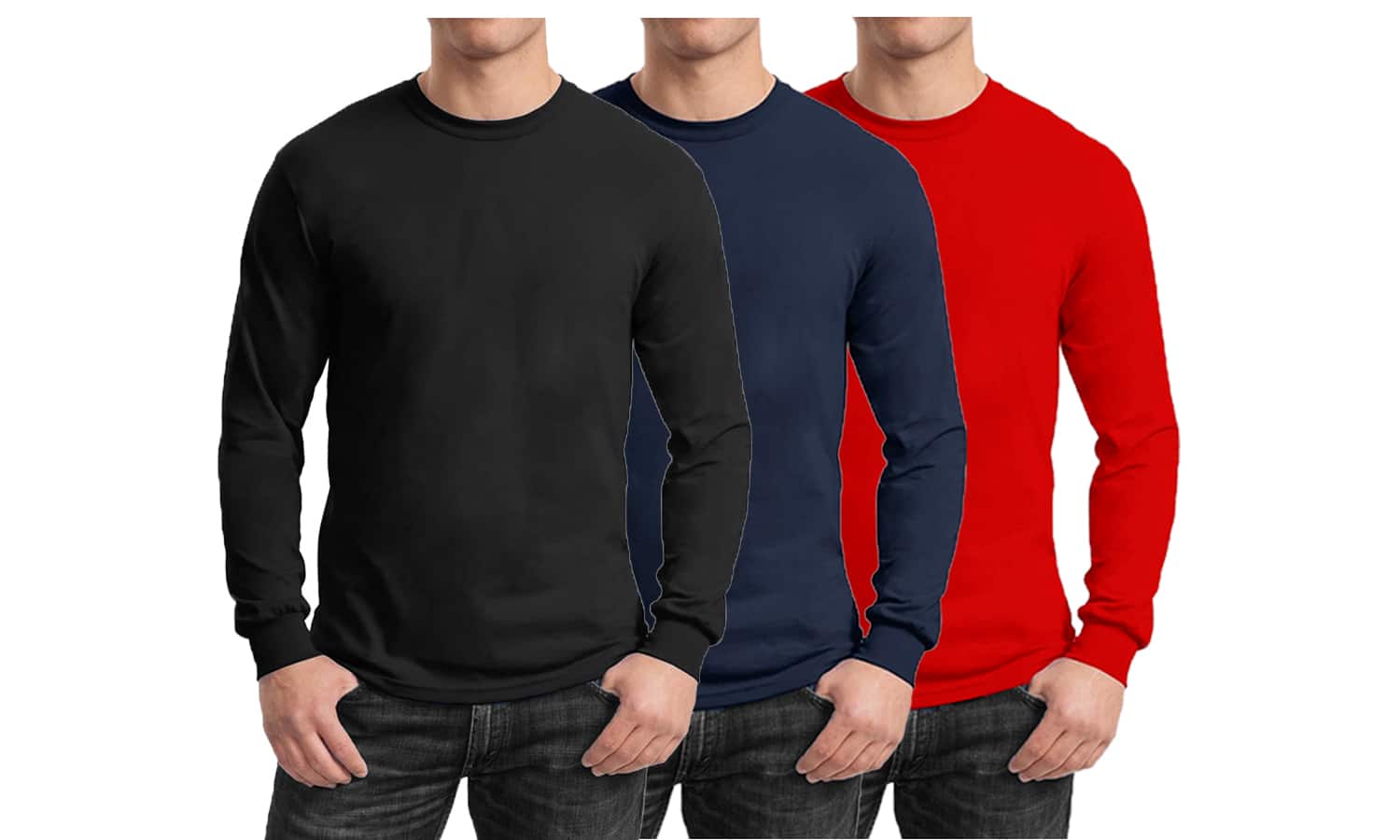 Galaxy By Harvic Long Sleeve Crew Neck Men's Egyptian Cotton-Blend T-Shirt 3 Pack