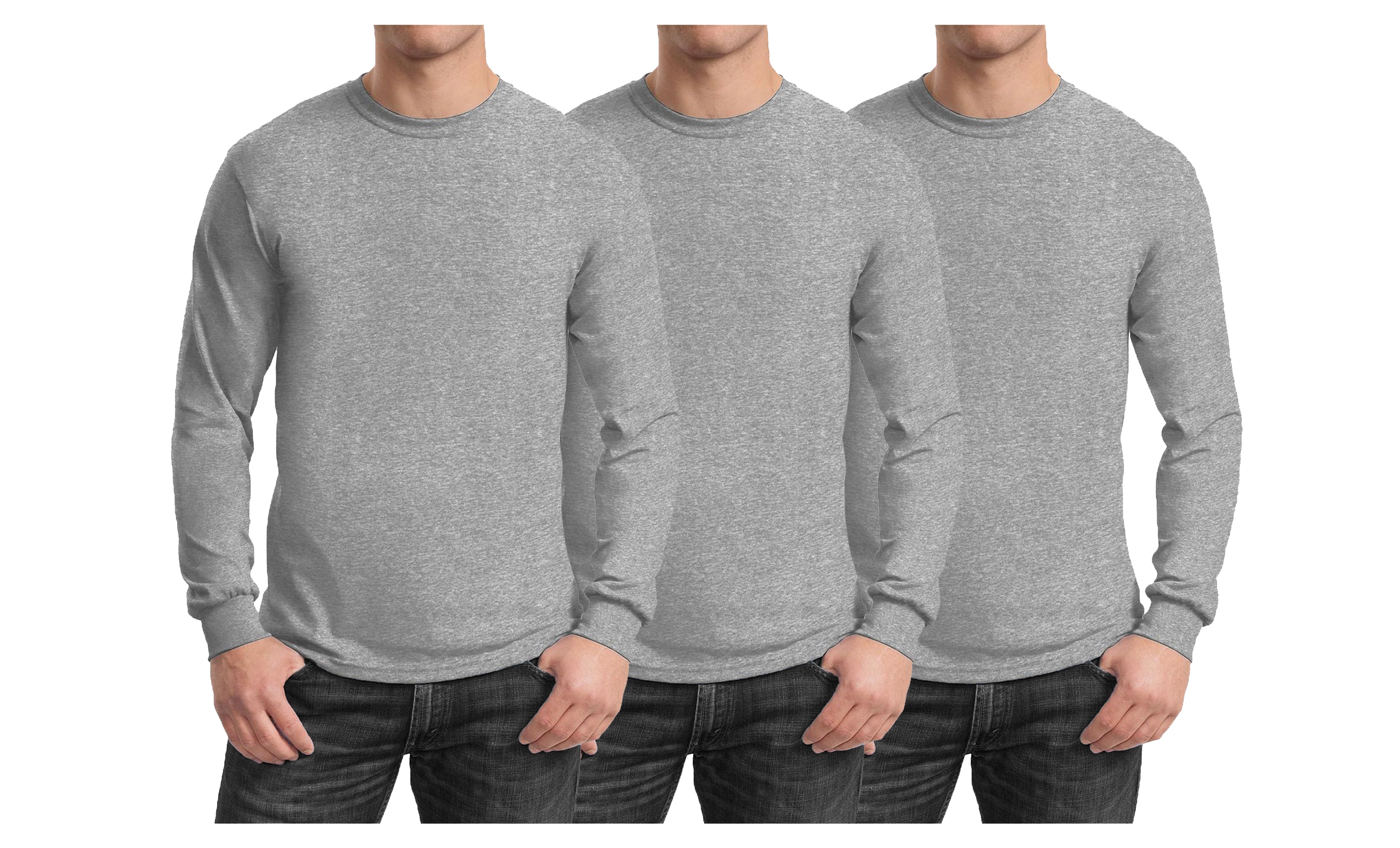 Galaxy By Harvic Long Sleeve Crew Neck Men's Egyptian Cotton-Blend T-Shirt 3 Pack