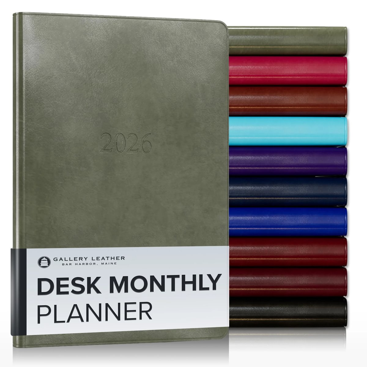 Gallery Leather Desk Monthly Planner 2026, Elegantly Bound Calendar Planner and Notebook with Stylish Gold-Gilded Page Edges, 18 Months - 8 x 5.5 ”