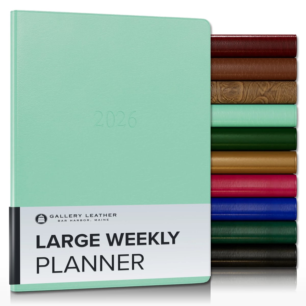 Gallery Leather Large Weekly Planner 2026, Elegantly Bound Calendar Planner and Notebook with Stylish Gold-Gilded Page Edges, 12 Months - 9.75 x 7.5 "