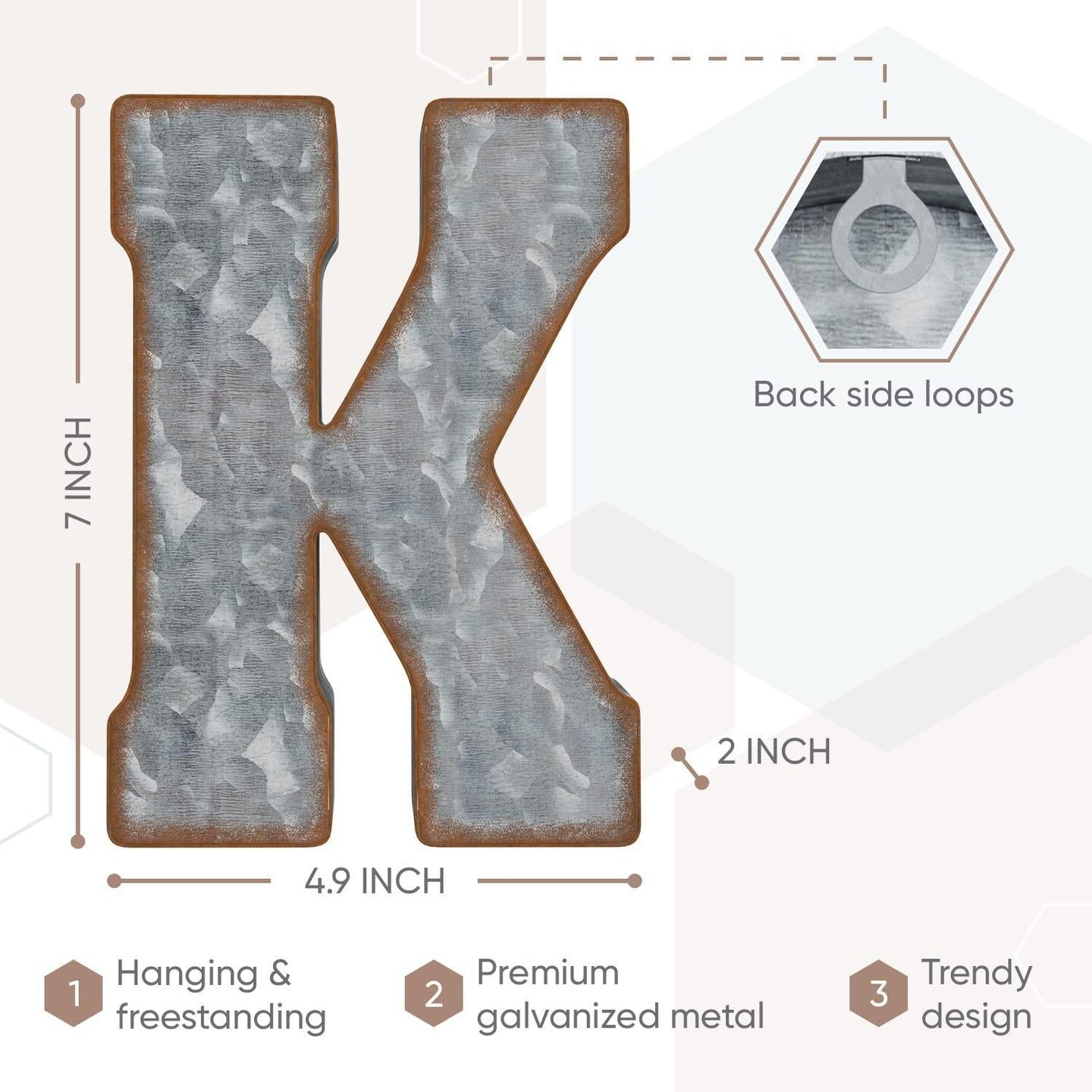 Galvanized Metal 3D Letter for Wall Decor for Hanging or Freestanding Unique Blend of Rustic Vintage Western and Industrial Styles Letter K
