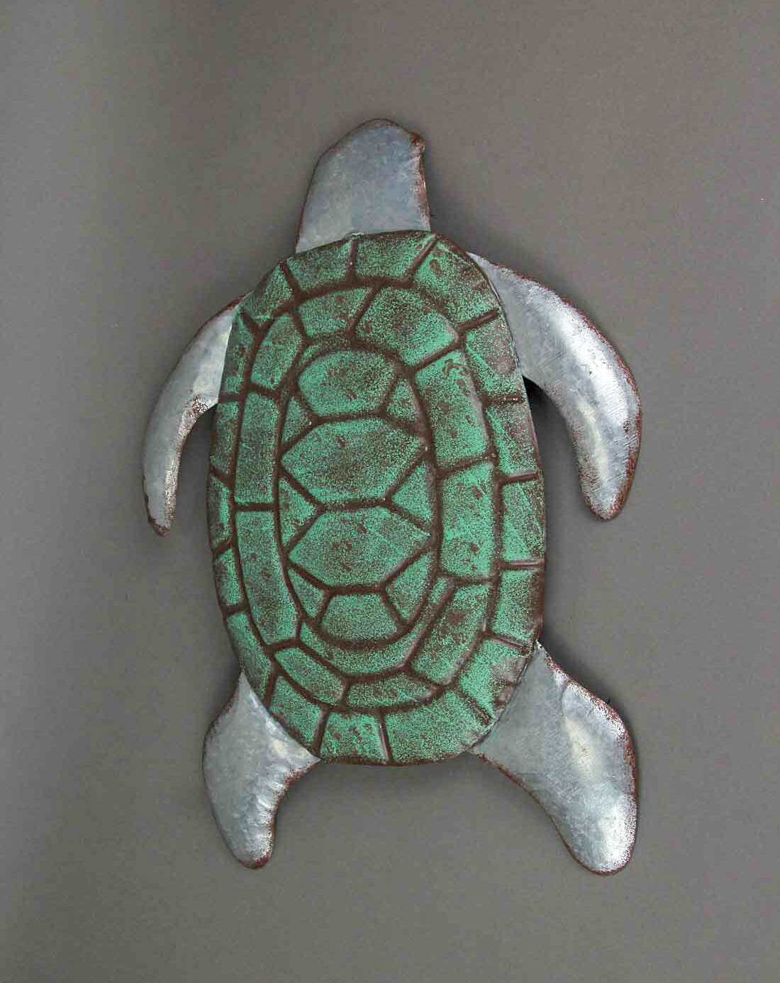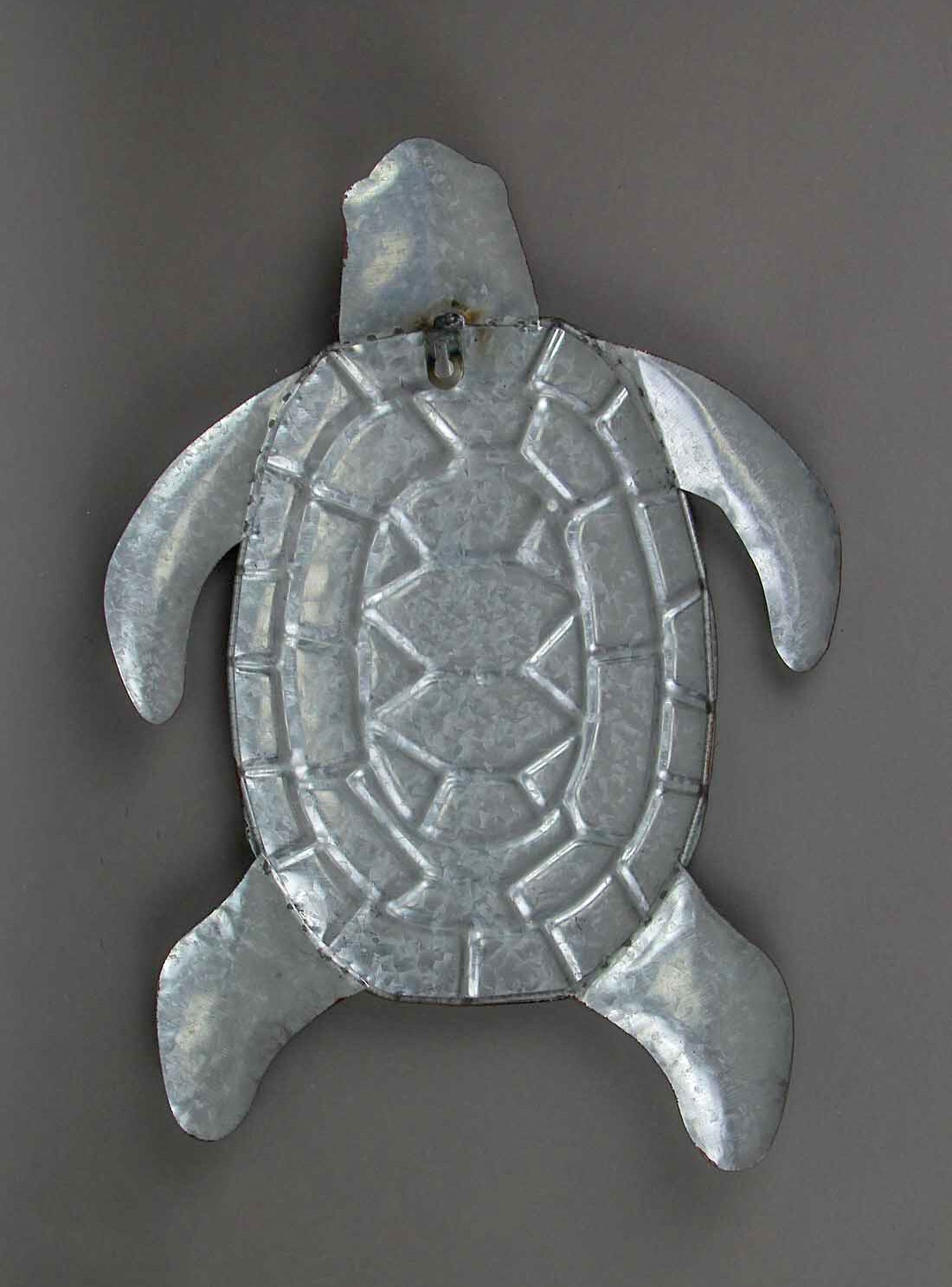 Galvanized Zinc Finish Metal Sea Turtle Wall Hanging With Painted Shell