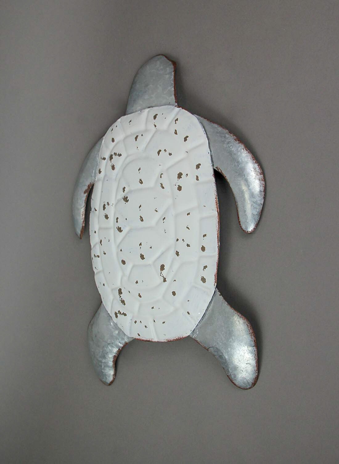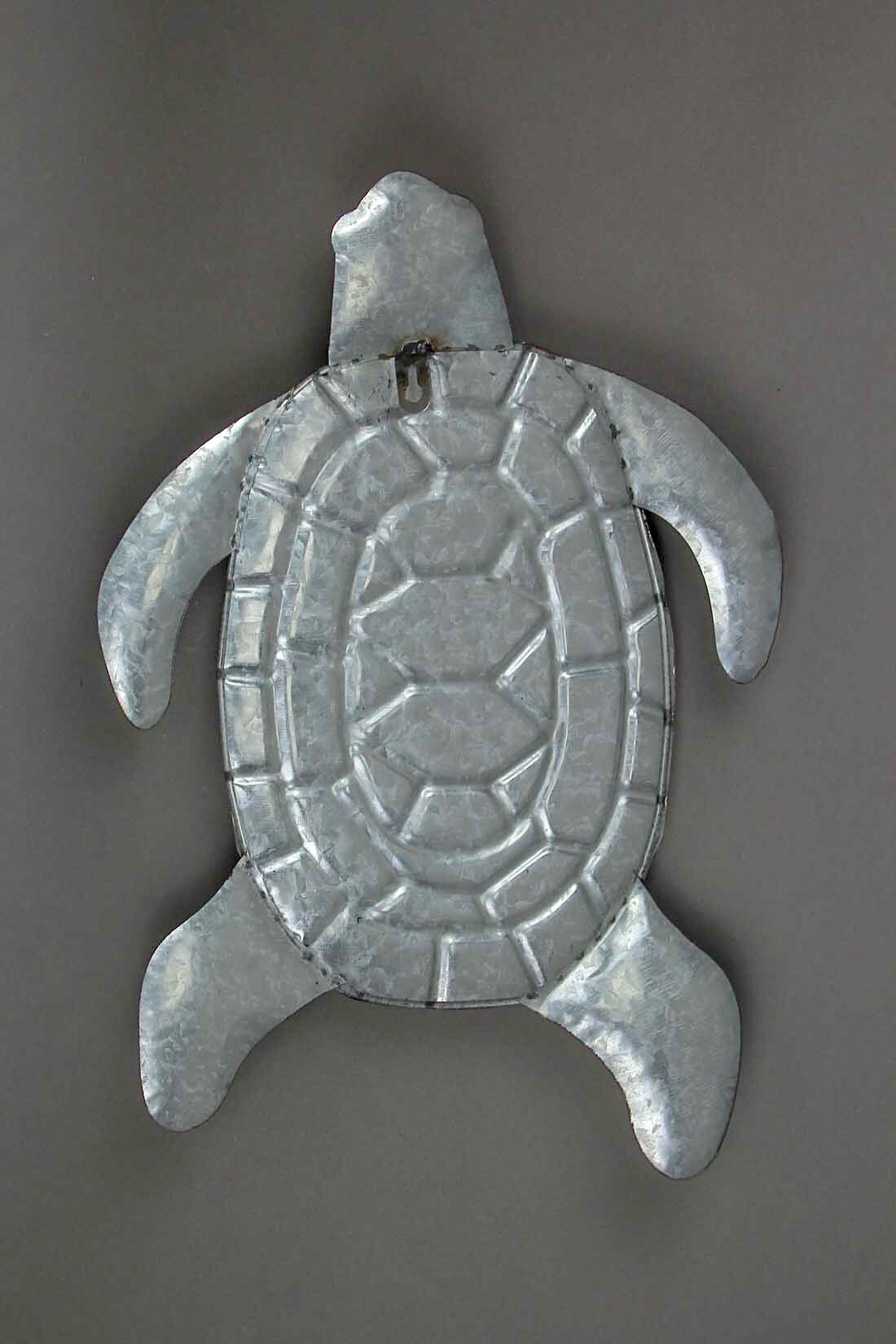 Galvanized Zinc Finish Metal Sea Turtle Wall Hanging With Painted Shell