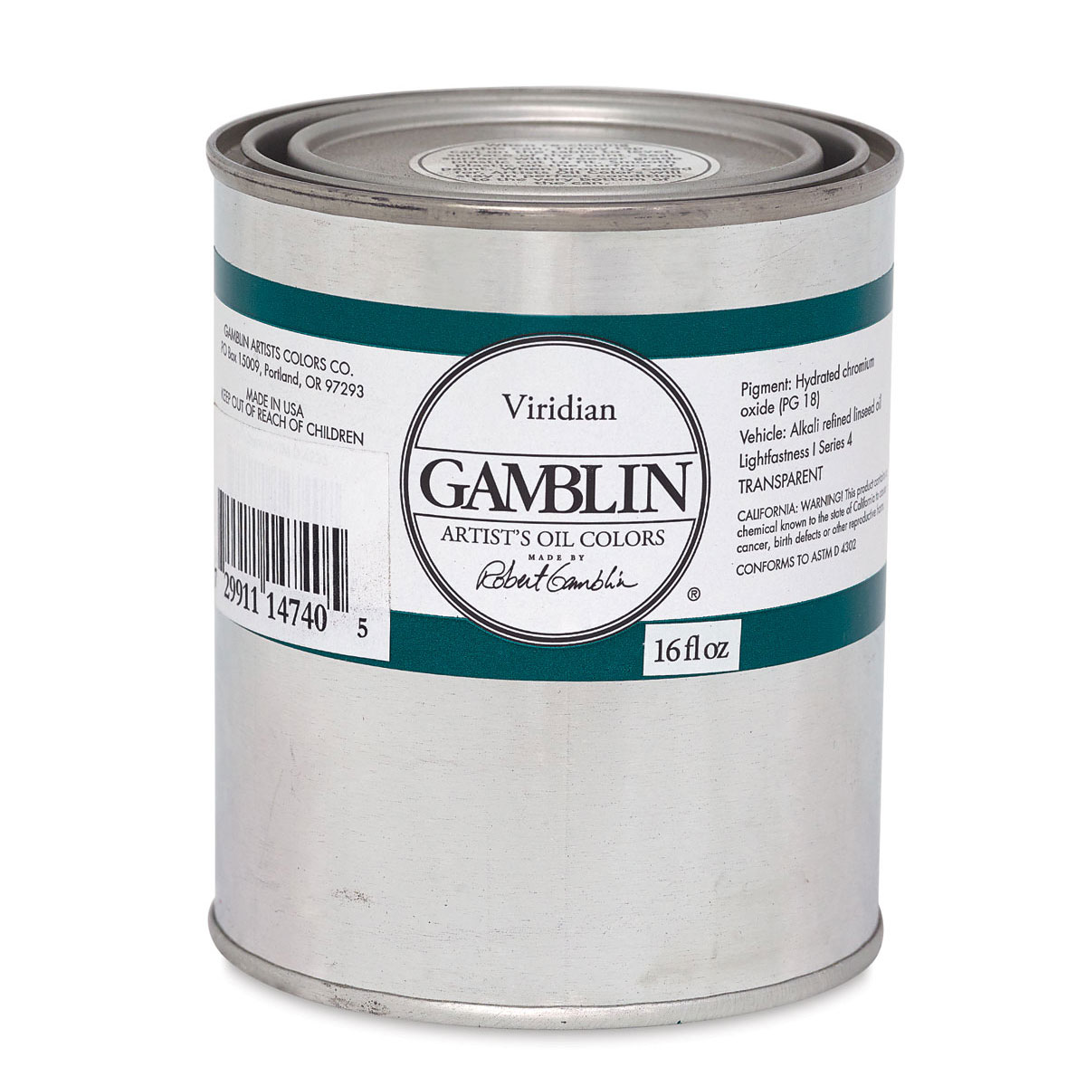 Gamblin Artist's Oil Color - Viridian, 16 oz Can