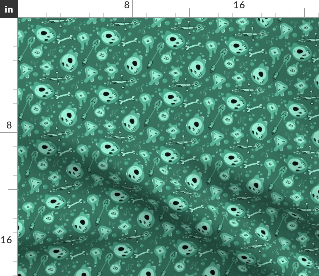 Game Dice Fantasy Polyhedral Green Skulls Tabletop Custom Printed Fabric by Spoonflower Various Fabrics by the Yard or Fat Quarter