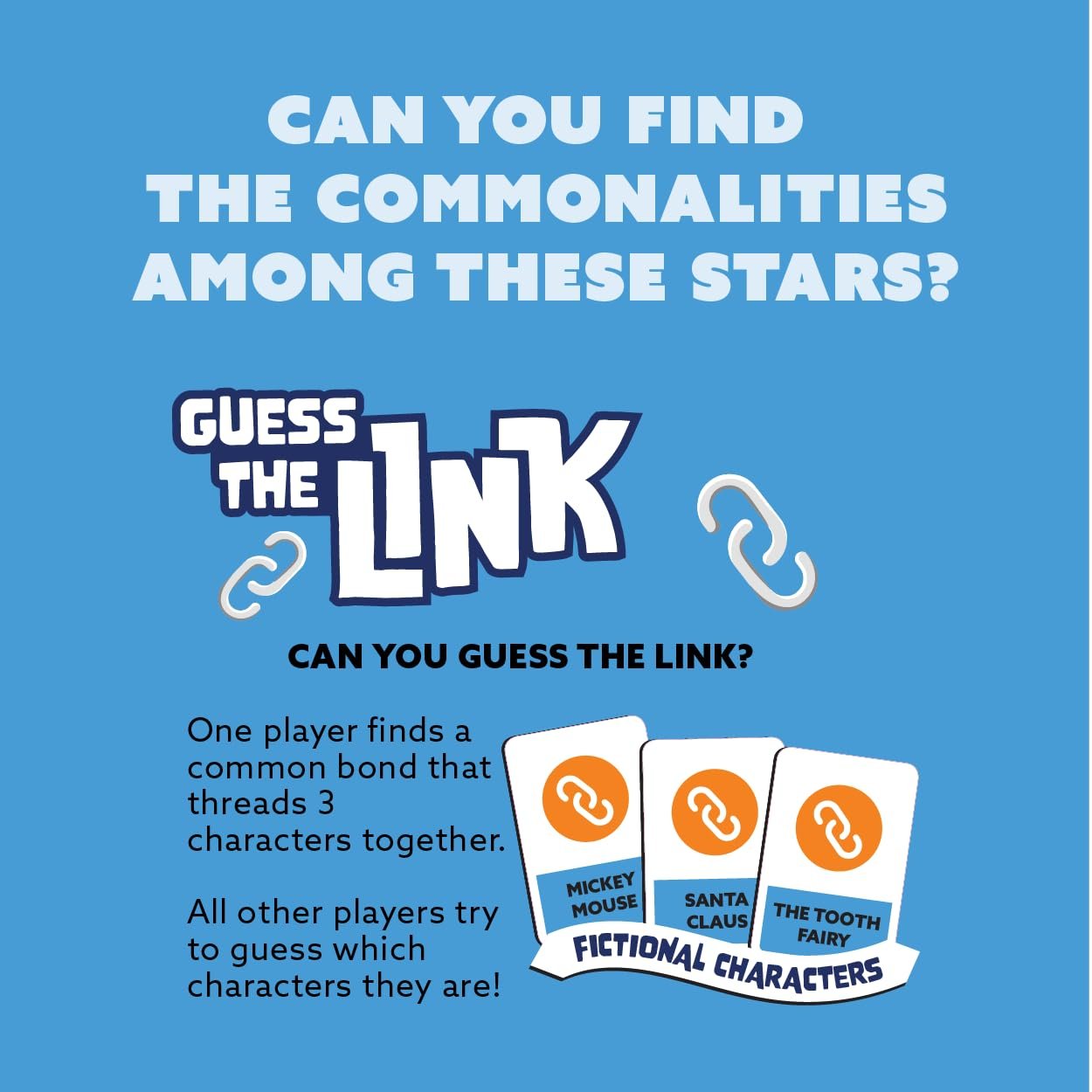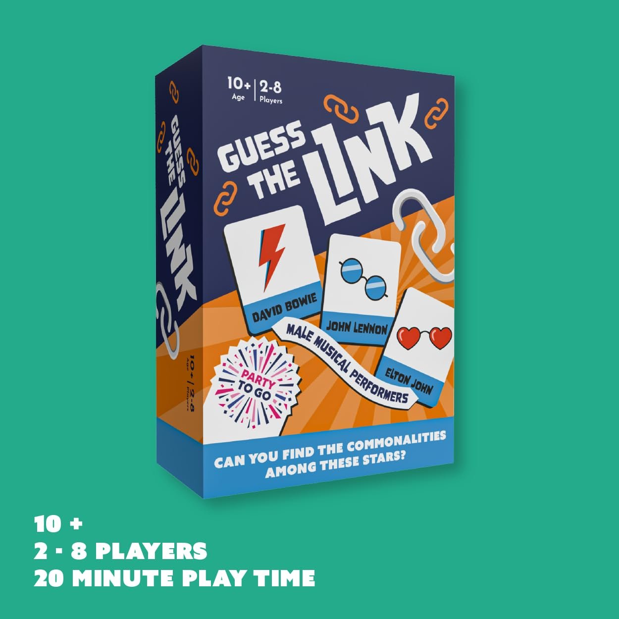 Gamewright - Party to Go - Guess The Link - Can You Find the Commonalities Among These Stars? - A Star-Studded Card Game - 2-8 Players Ages 10+