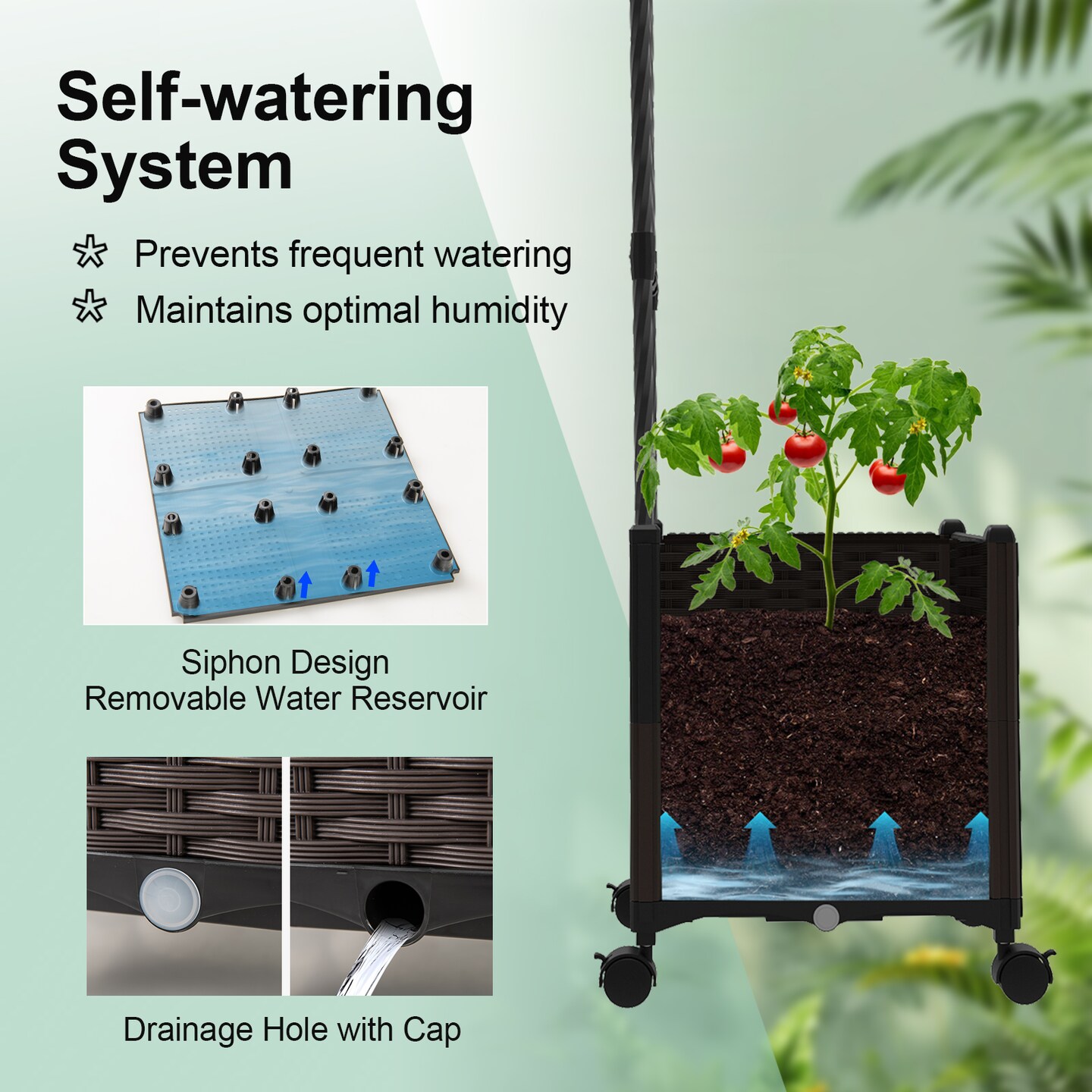 Garden Arch Trellis 6.6 Ft with 2 Planters and Rolling Lockable Wheels