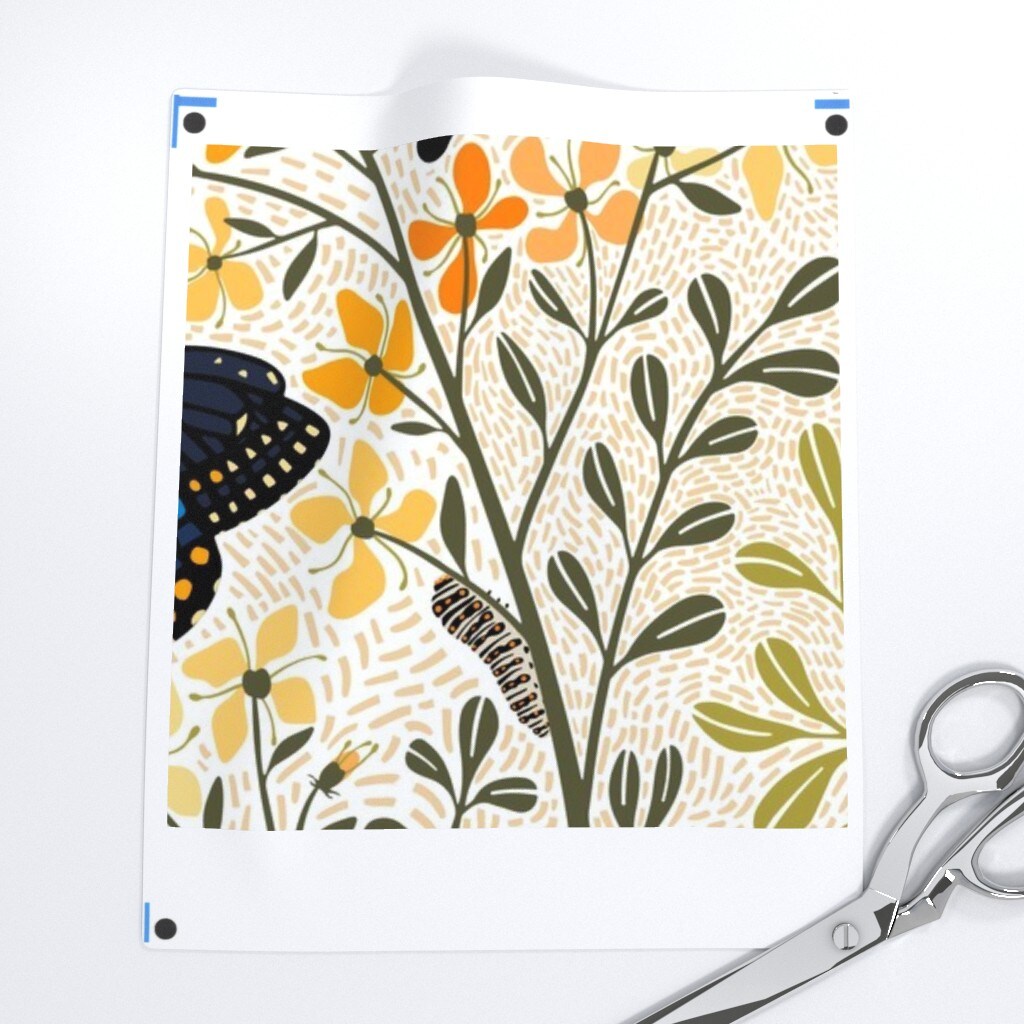 Garden Butterflies Flowers Butterfly Bag Garden Botanical Dill Herbs Caterpillar Swallowtail Rue Chrysalis Custom Pre-pasted Wallpaper by Spoonflower Pre-Pasted Wallpaper 2FT Wide