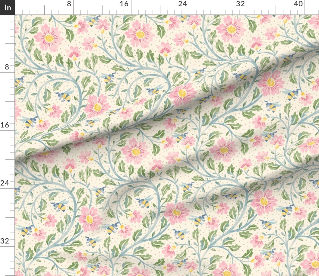 Garden Floral Bees Custom Printed Fabric by Spoonflower Various Fabrics by the Yard or Fat Quarter 20836771