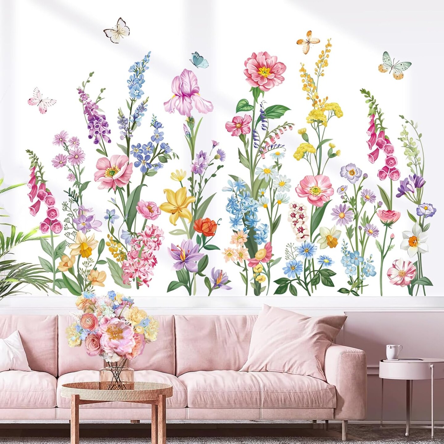 Garden Flower Wall Stickers Wildflower Iris Daisy Floral Butterflies Peel (Multi)