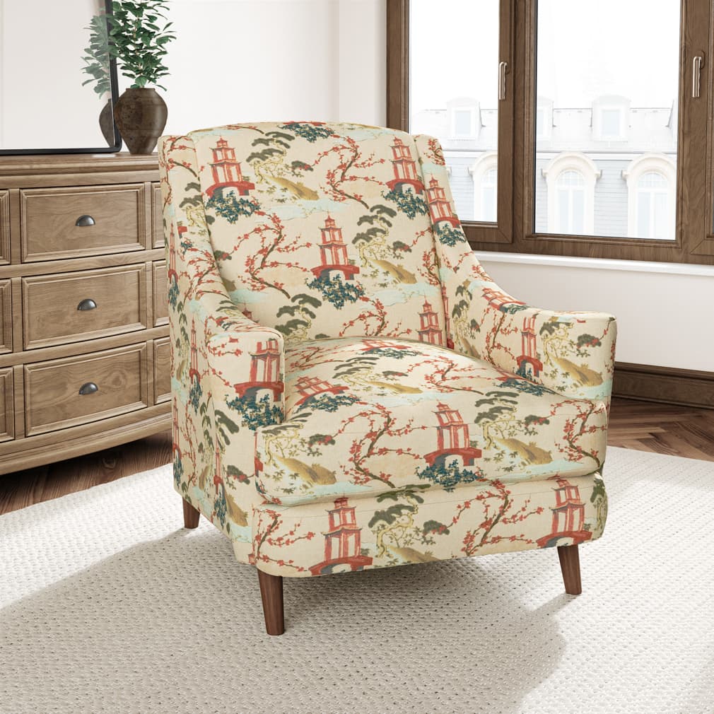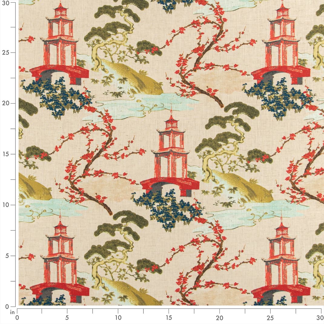Garden - Green,Red & Burgundy Global,Novelty,Toile Upholstery Fabric 54 Inches"