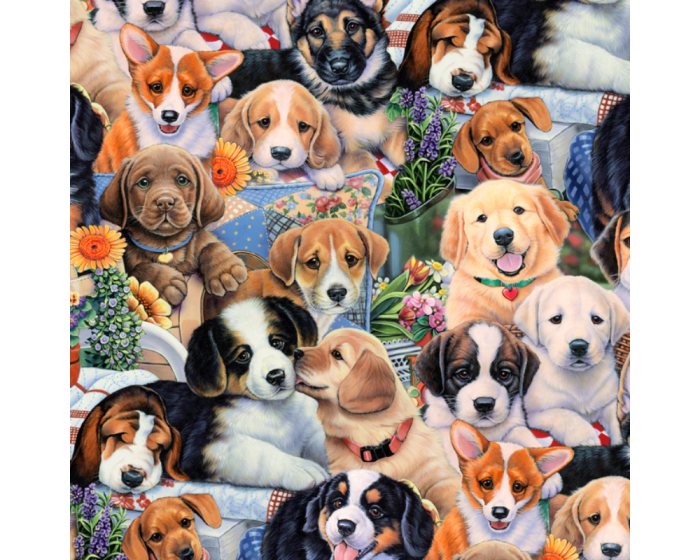 Garden Puppies Cotton Fabric | By the Yard | Sewing and Crafting | 44 inches wide