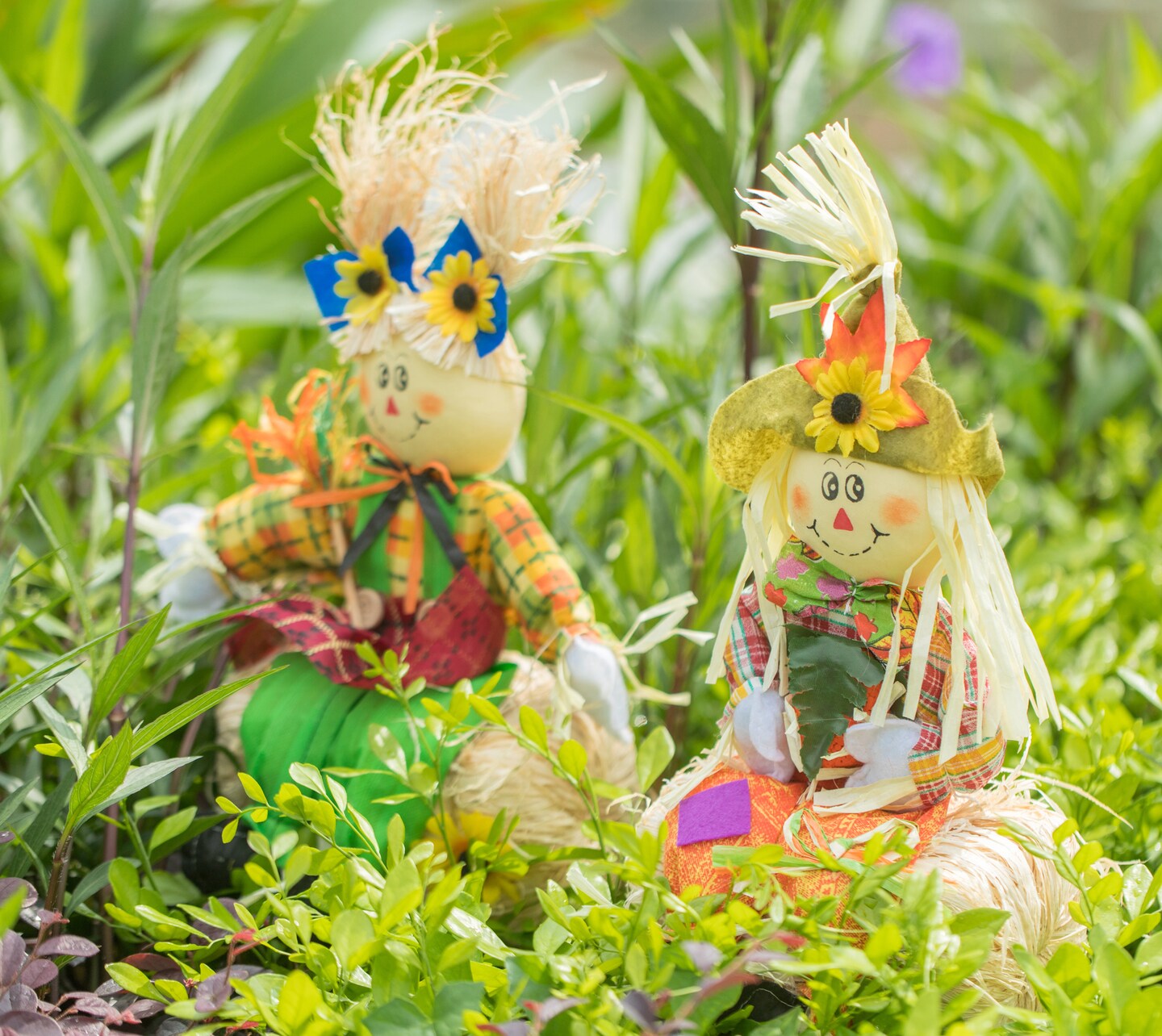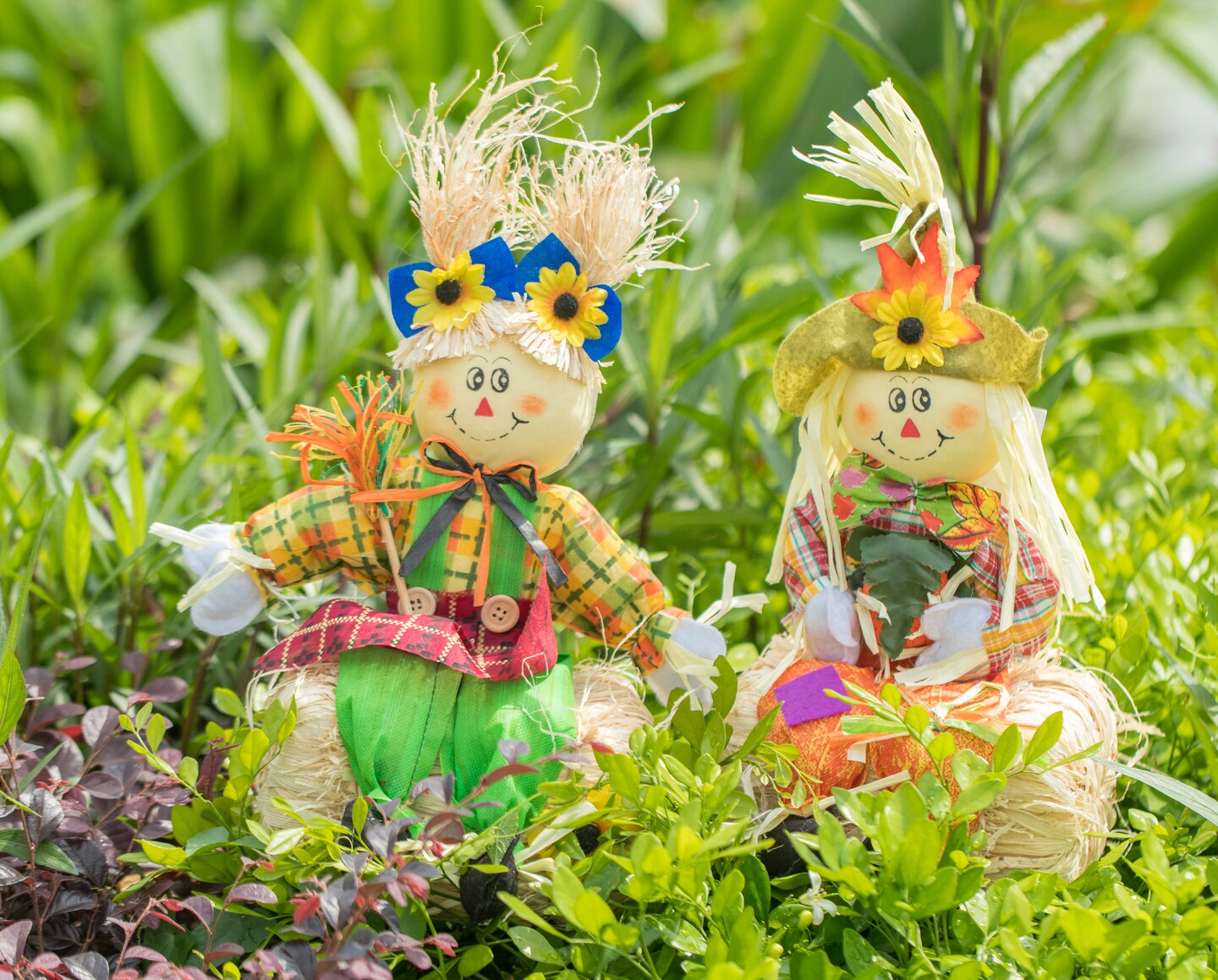 Gardenised 13 Inch Boy and Girl Duo Scarecrow Elegantly Seated on a Rustic Hay Bales - Enjoy the Magic they Bring and Let your Garden Blossom with their Captivating Presence
