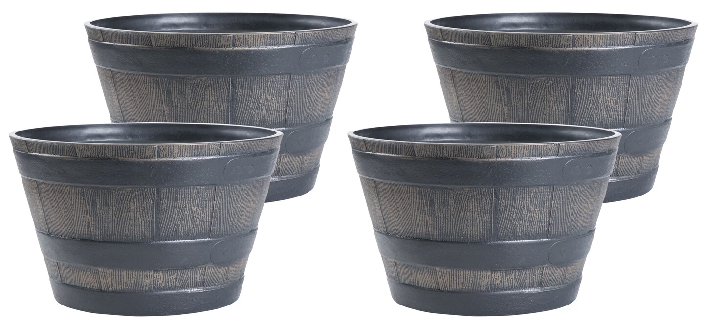 Gardenised 4-Piece Round Half Barrel Flower Pots Rustic Farmhouse Style Faux Wood Planter Containers for Indoor & Outdoor Use Perfect for Displaying Decorative Garden Florals Herbs & Succulents