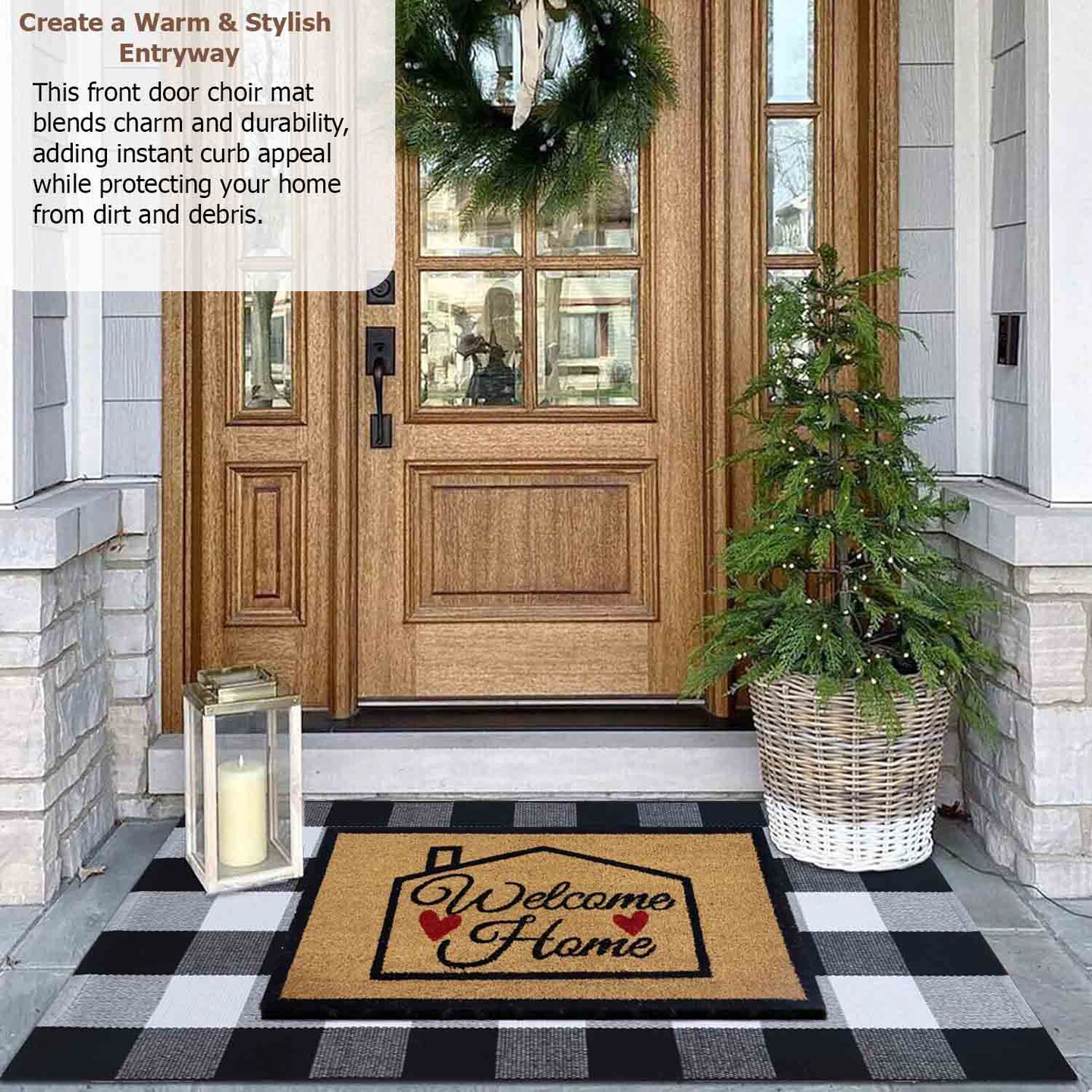 Gardenised Heavy Duty Coco Coir Doormat Non Slip PVC Baking Embossed Welcome Design Natural Coconut Fiber Floor Mat for Front Door Porch Patio Entryway Garage Mudroom & Outdoor Use 18x30"