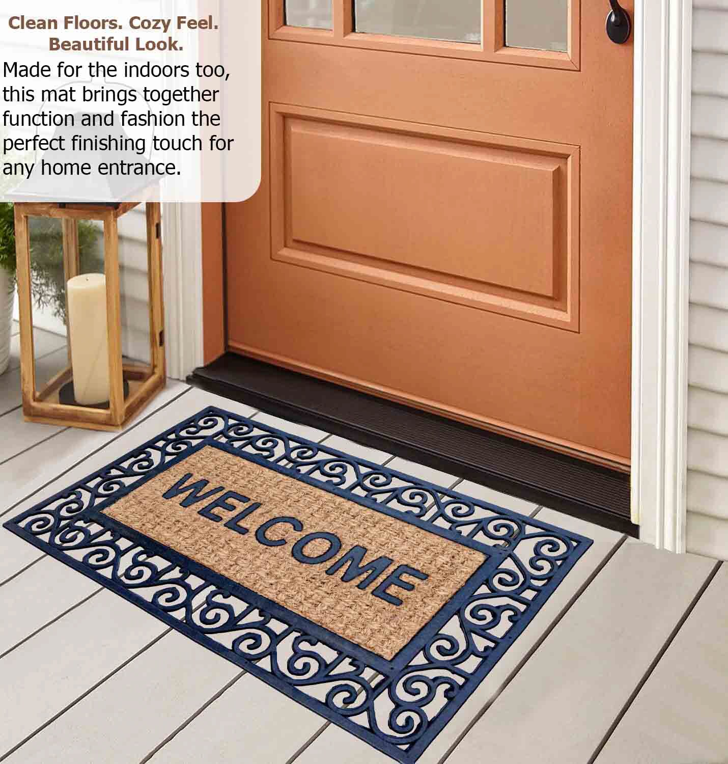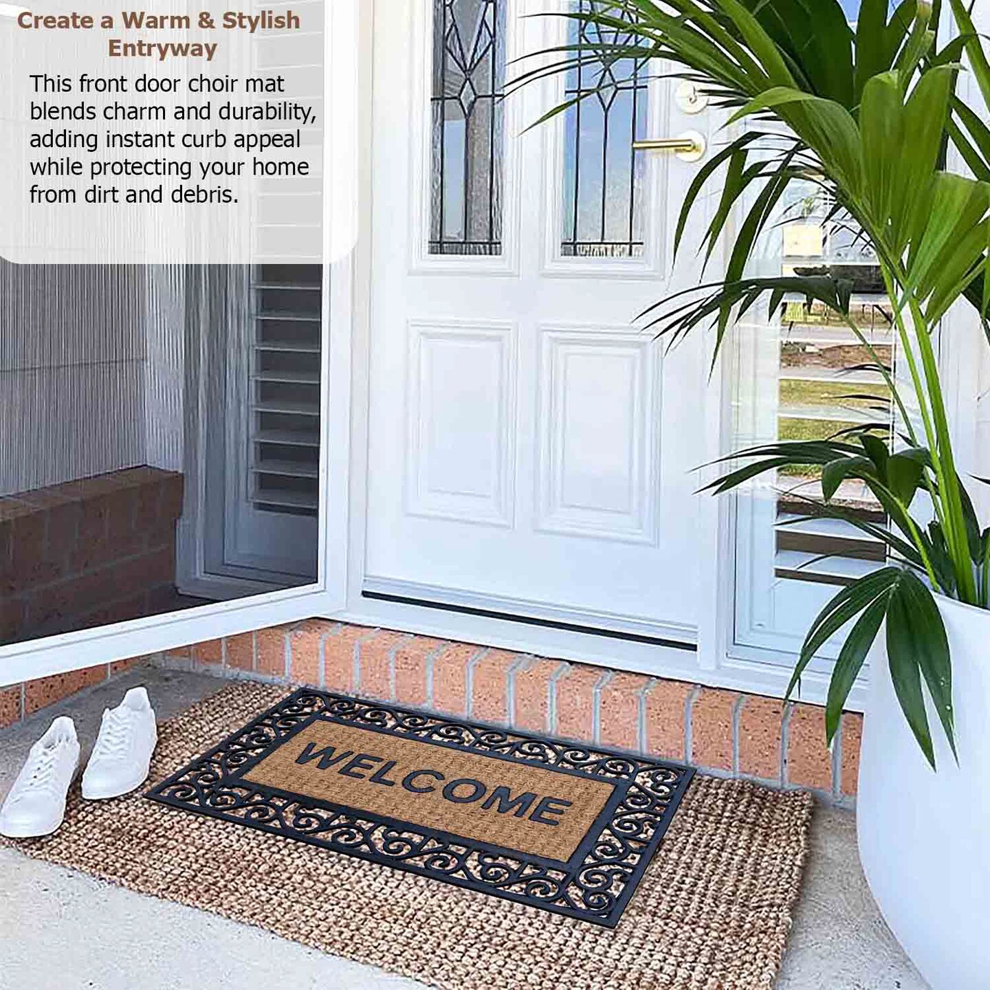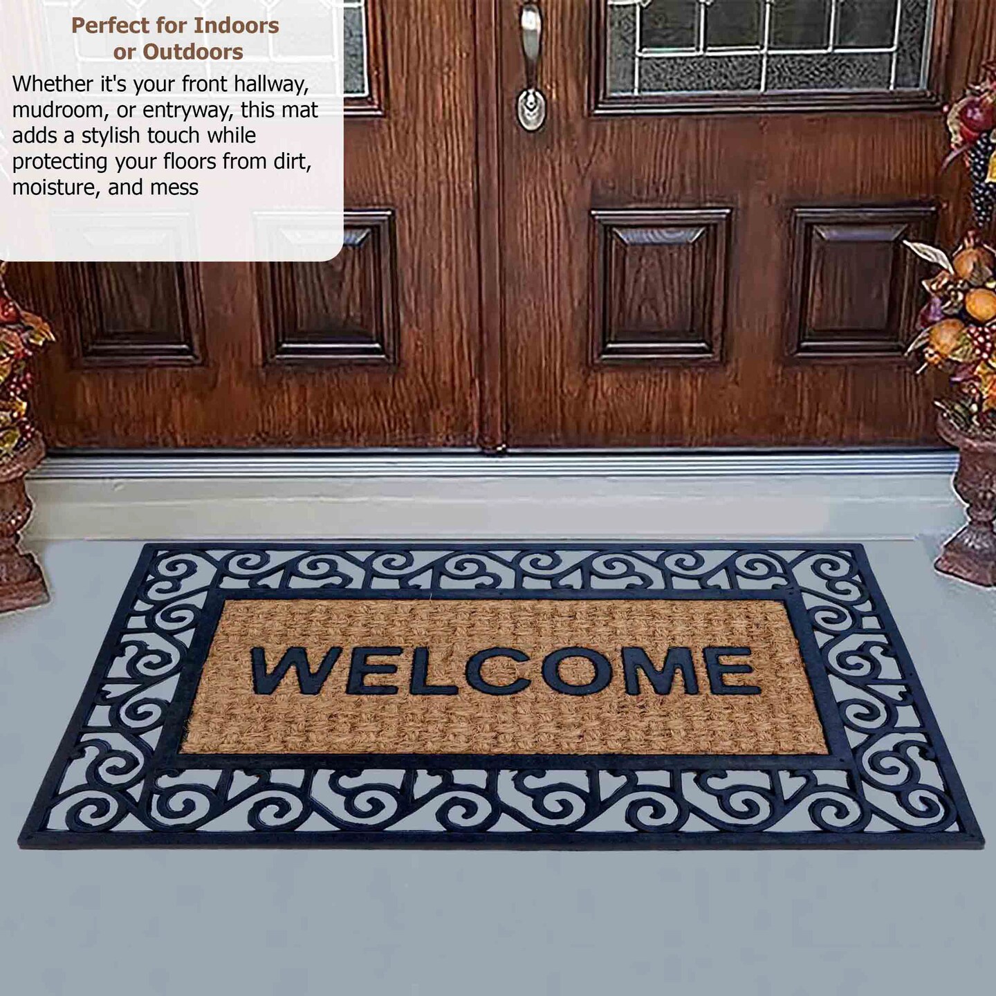 Gardenised Heavy Duty Coco Coir Doormat Non Slip PVC Baking Embossed Welcome Design Natural Coconut Fiber Floor Mat for Front Door Porch Patio Entryway Garage Mudroom & Outdoor Use 18x30"