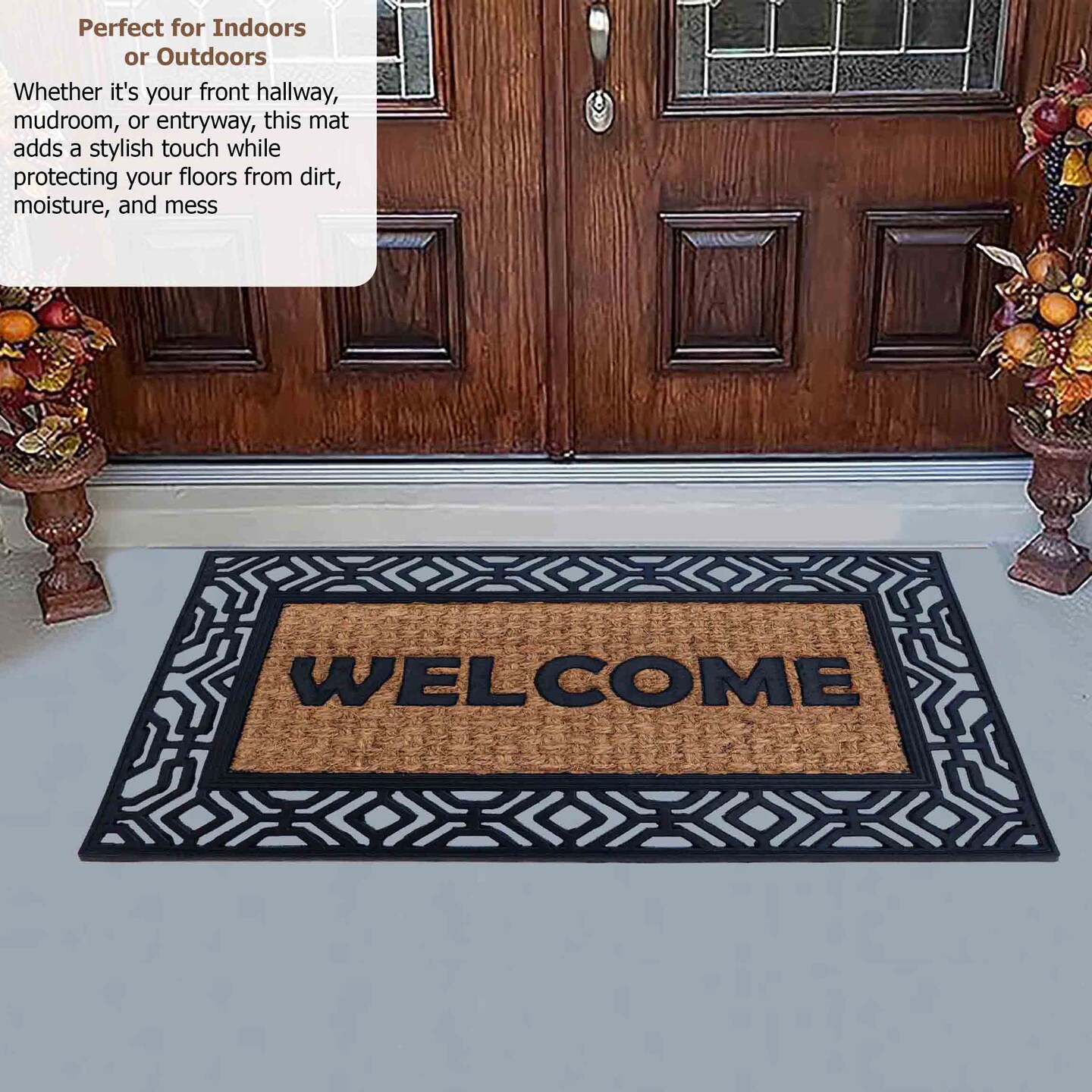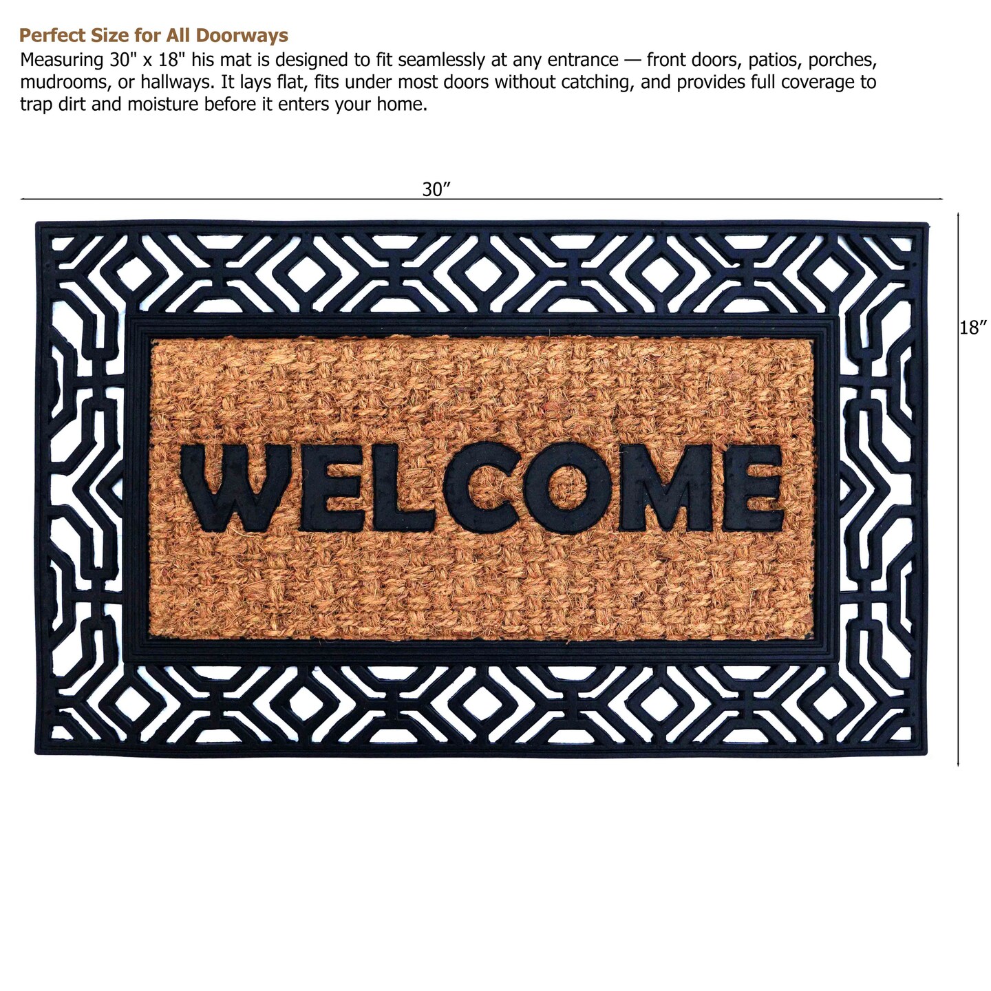 Gardenised Heavy Duty Coco Coir Doormat Non Slip PVC Baking Embossed Welcome Design Natural Coconut Fiber Floor Mat for Front Door Porch Patio Entryway Garage Mudroom & Outdoor Use 18x30"