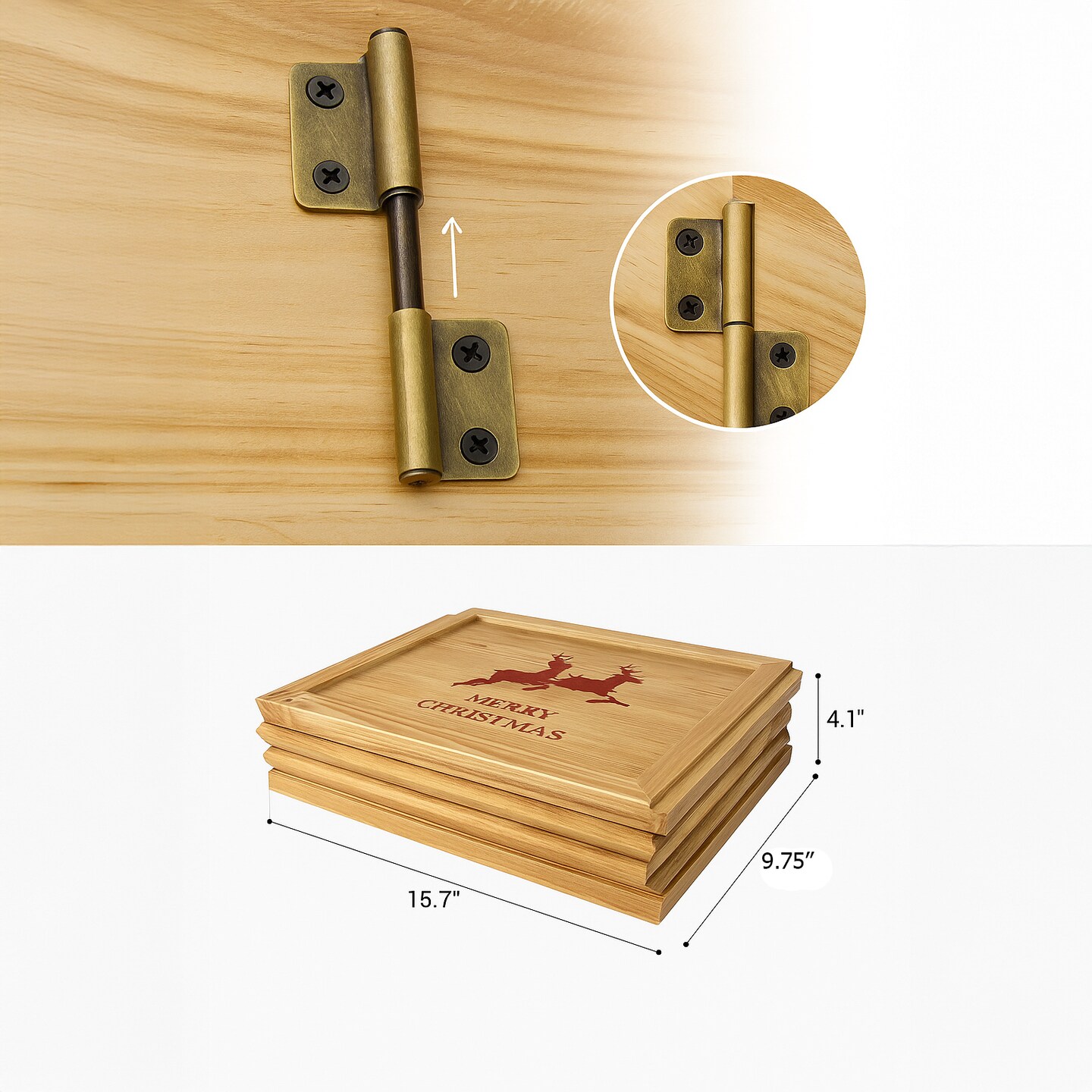 Gardenised Natural Wood Christmas Tree Collar with Deer Pattern Panels Foldable Ring Box Cover and Festive Base Wrap Perfect Holiday Skirt Alternative for Indoor Displays & Seasonal Home Decor