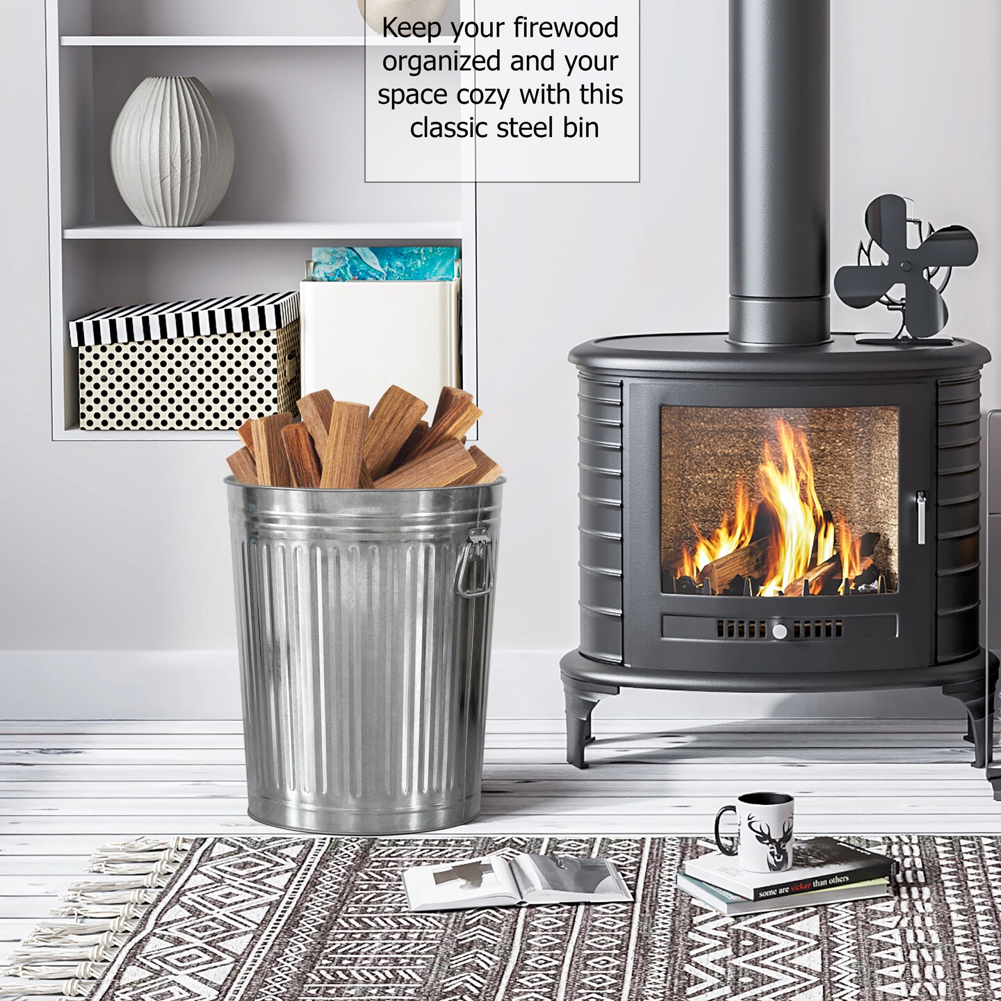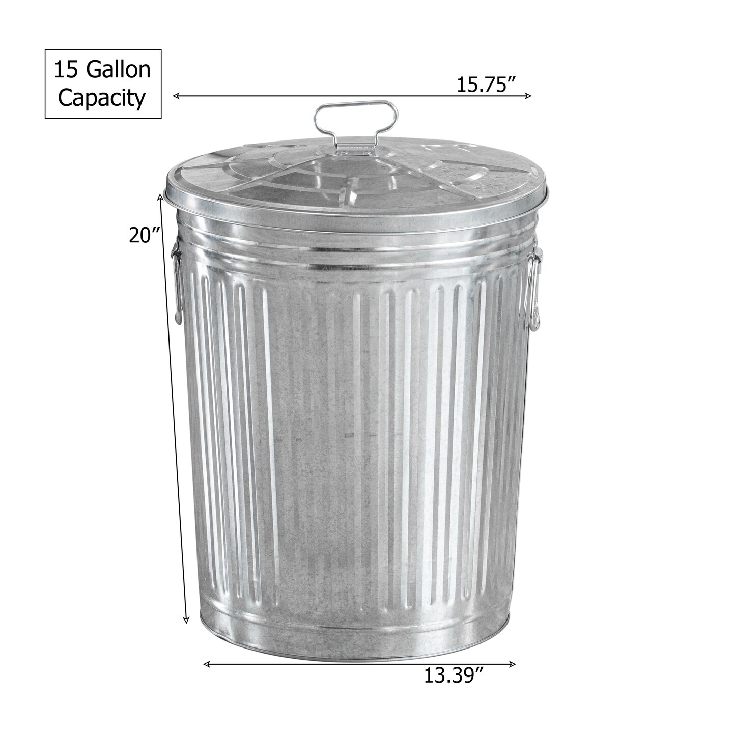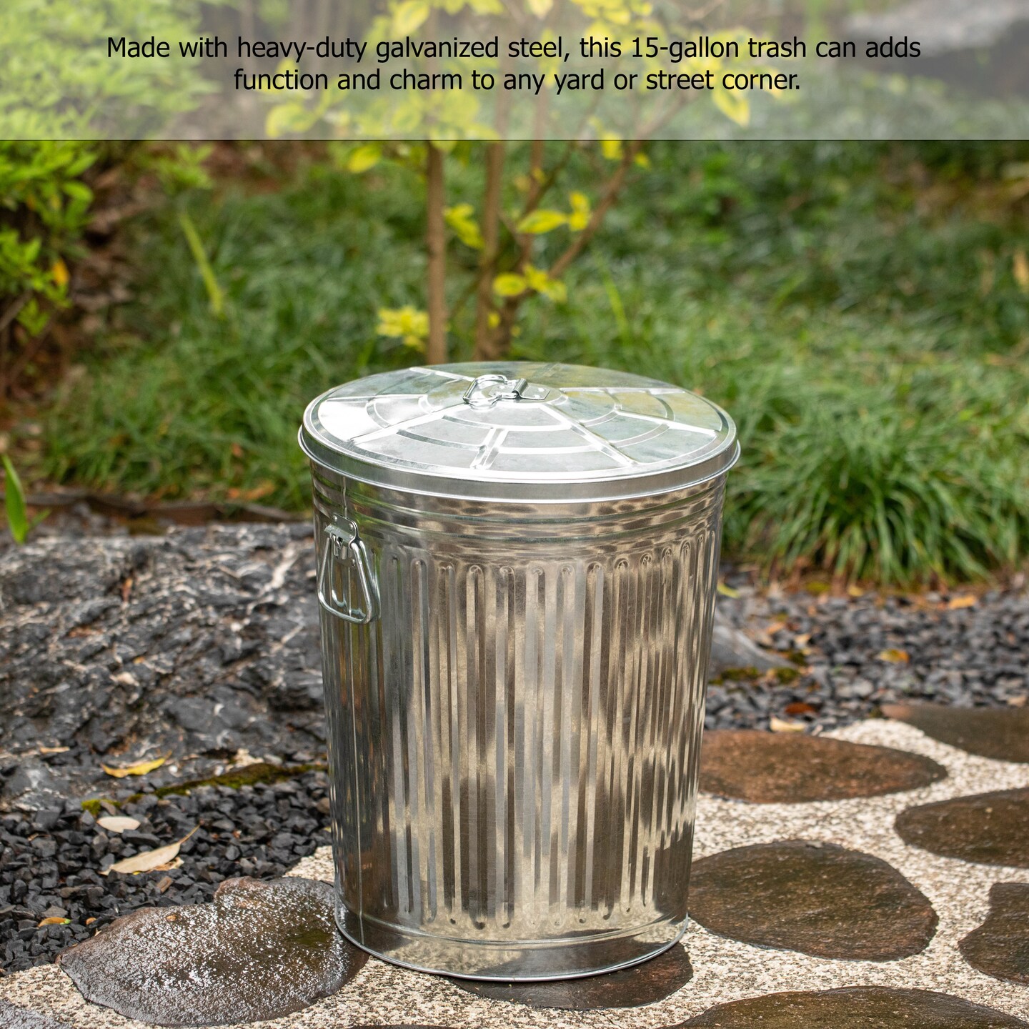 Gardenised Round Galvanized Steel, Trash Can with Lid - Durable Metal Bucket for Backyard, Lawn, Garden and Yard Use - Weather-Resistant Garbage Can for Indoor and Outdoor