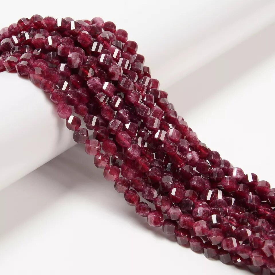 Garnet Color Dyed Jade Faceted Spiral Twist Beads Size 6mm 15.5'' Strand