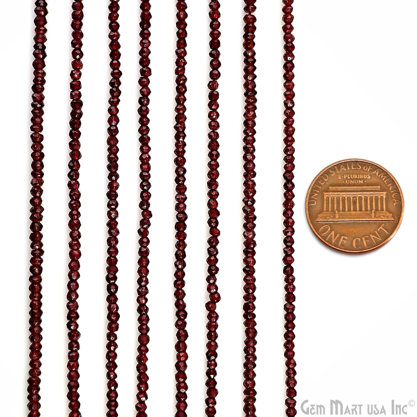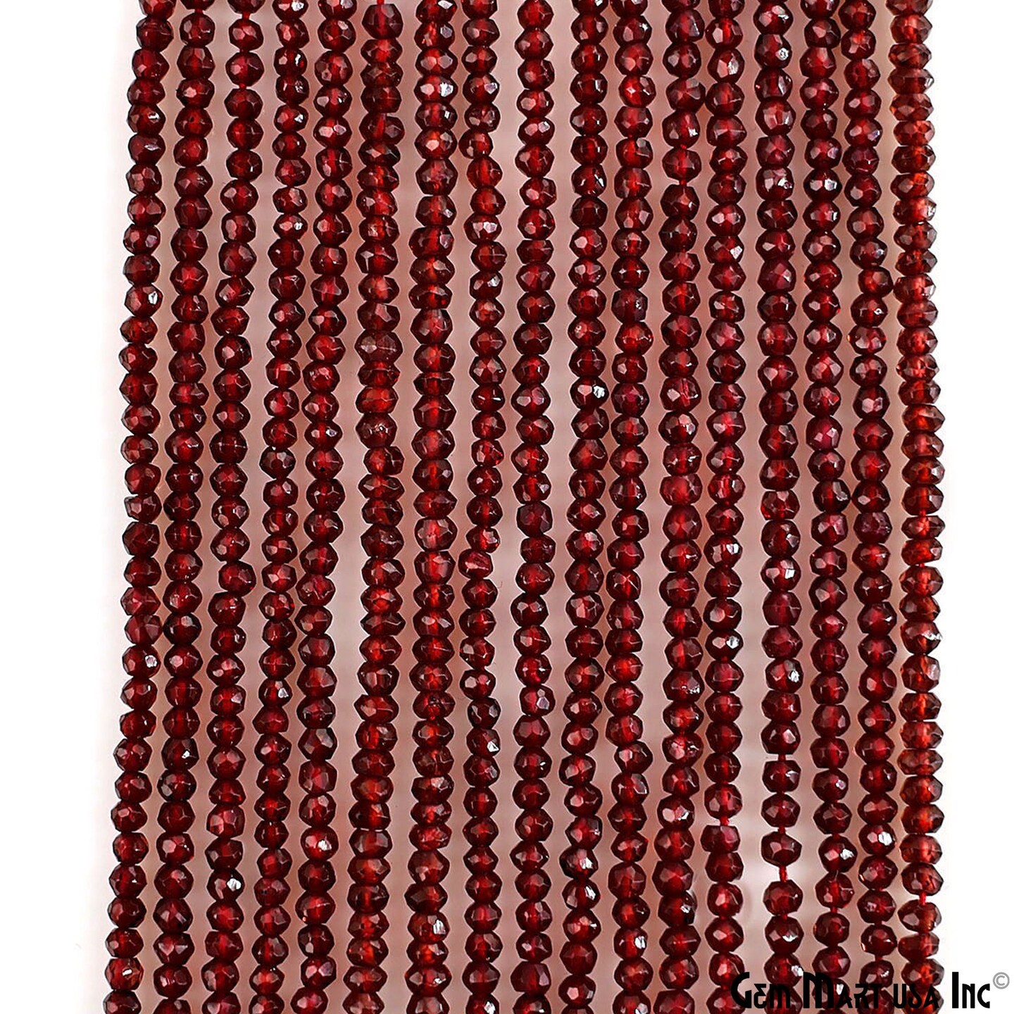 Garnet Rondelle Beads, 12.5 Inch Gemstone Strands, Drilled Strung Nugget Beads, Faceted Round, 2-2.5mm