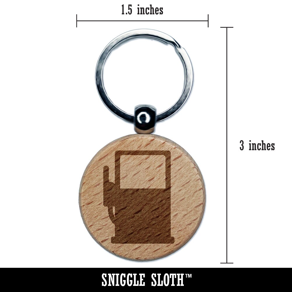 Gas Station Pump Engraved Wood Round Keychain Tag Charm