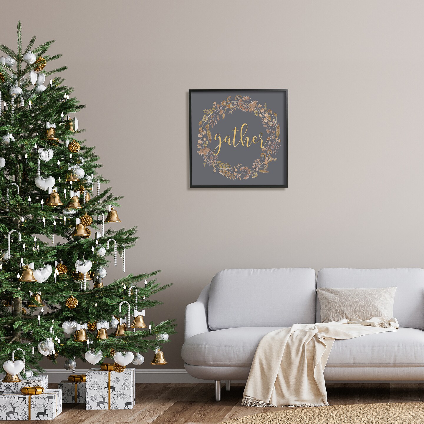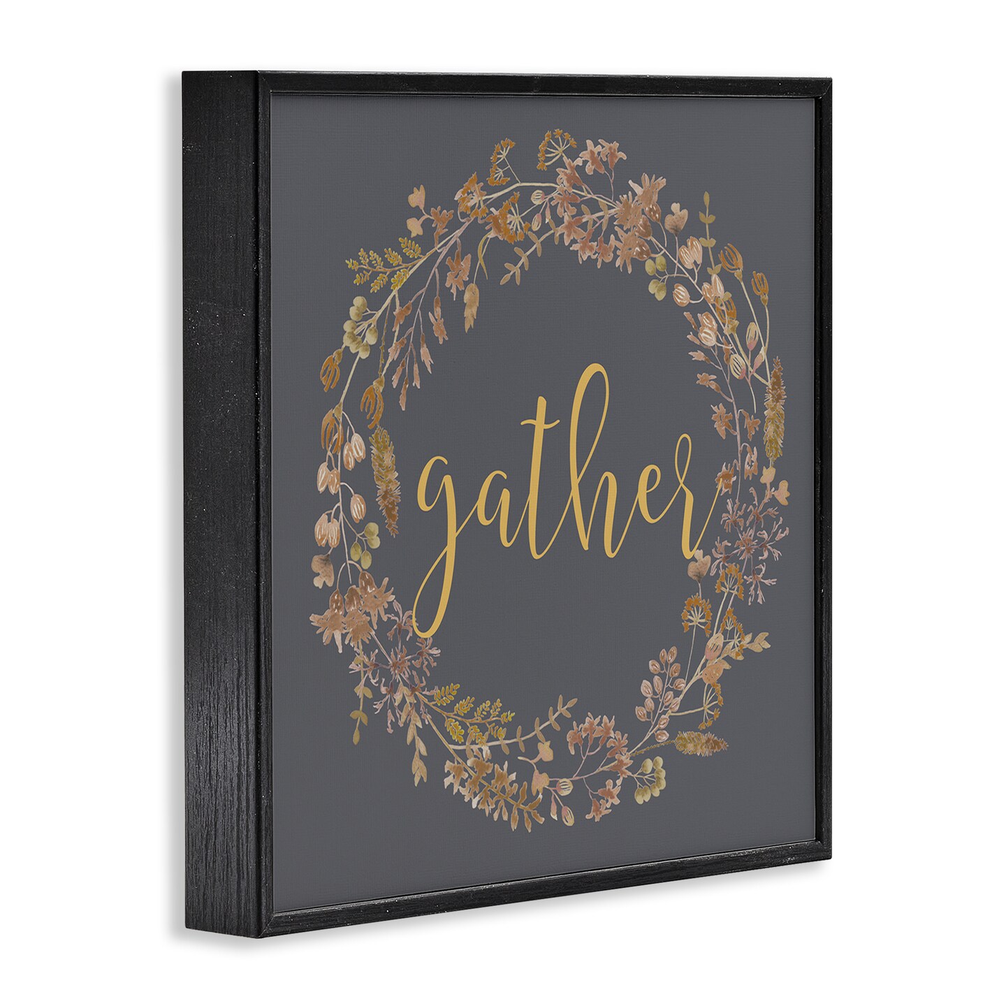 Gather Calligraphy Rustic Autumn Botanical Blooms Wreath Framed Giclee Art